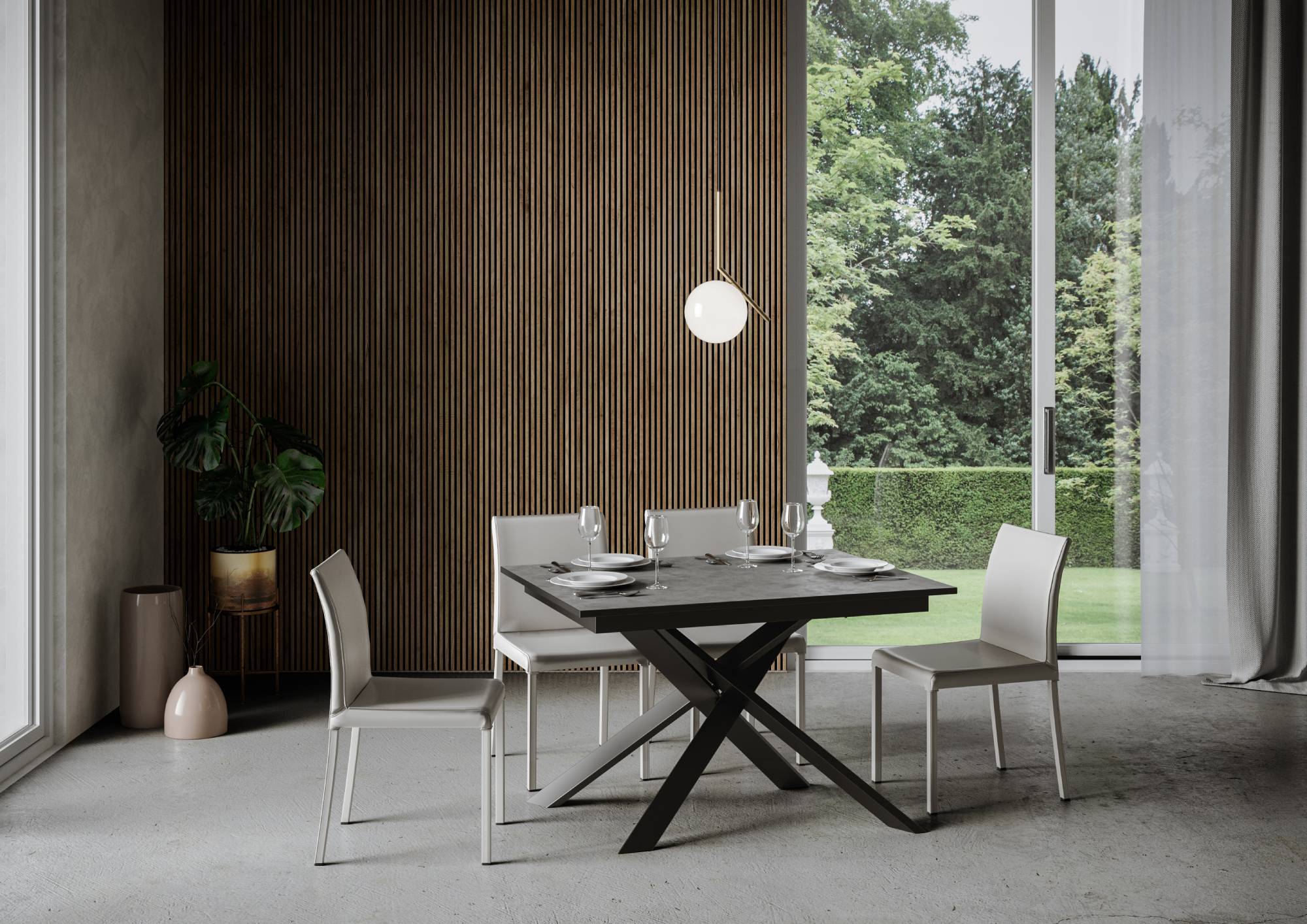 Quando non è allungato, il tavolo "Varese" può essere posizionato contro una parete per l'appoggio di oggetti decorativi o come piano di lavoro aggiuntivo.