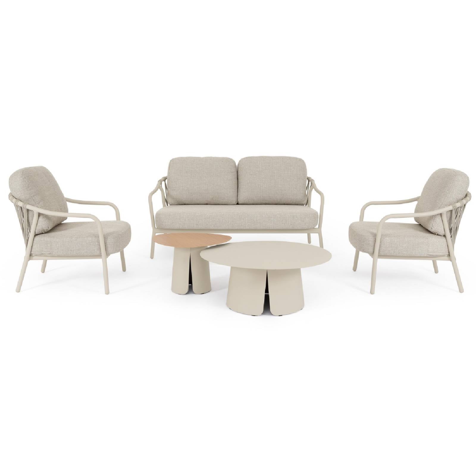 Il design essenziale si abbina facilmente a salotti outdoor moderni, creando superfici funzionali perfette per appoggiare bevande, libri o accessori.