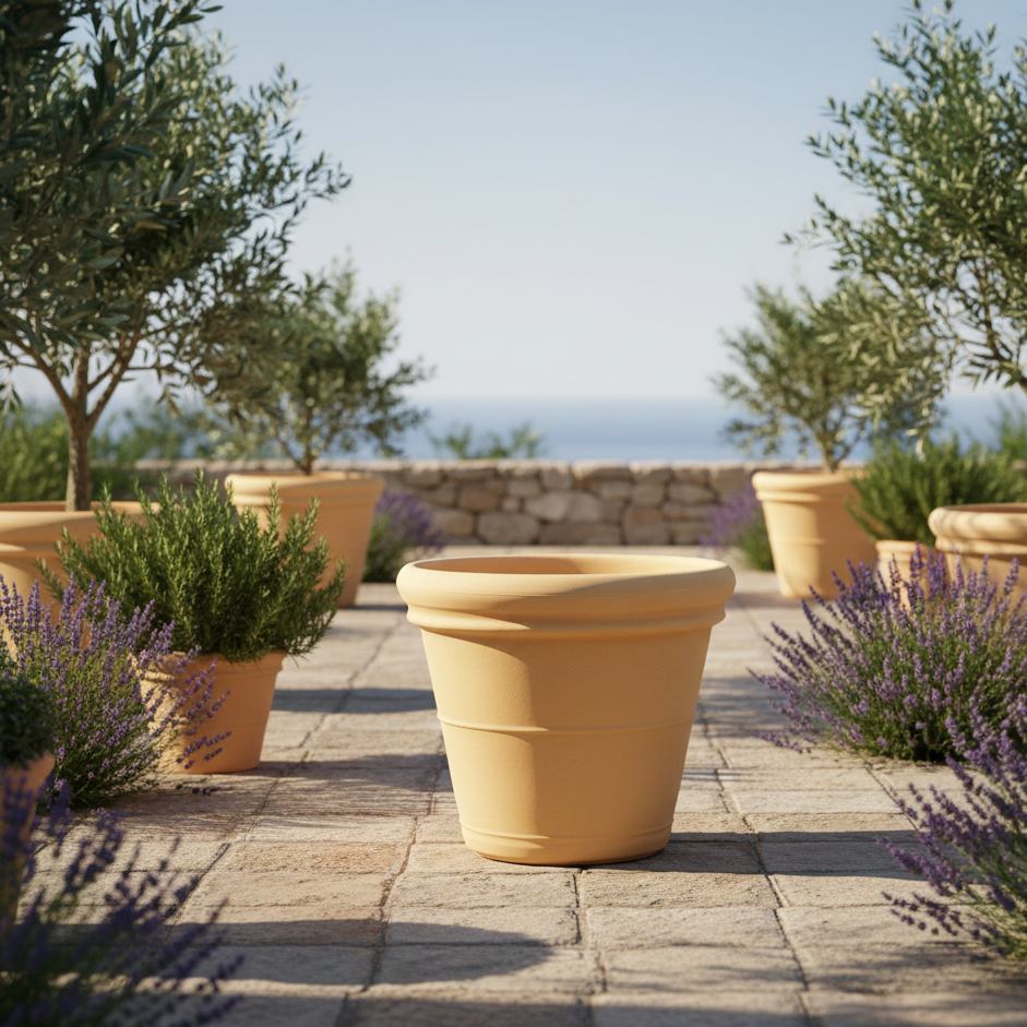 Vaso Doppiobordo Liscio rotondo in resina decorazione per esterno "Made in Italy"