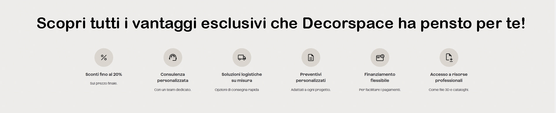 Non fai ancora parte del Programma Decorspace Pro? Scopri il nostro programma esclusivo per professionisti.