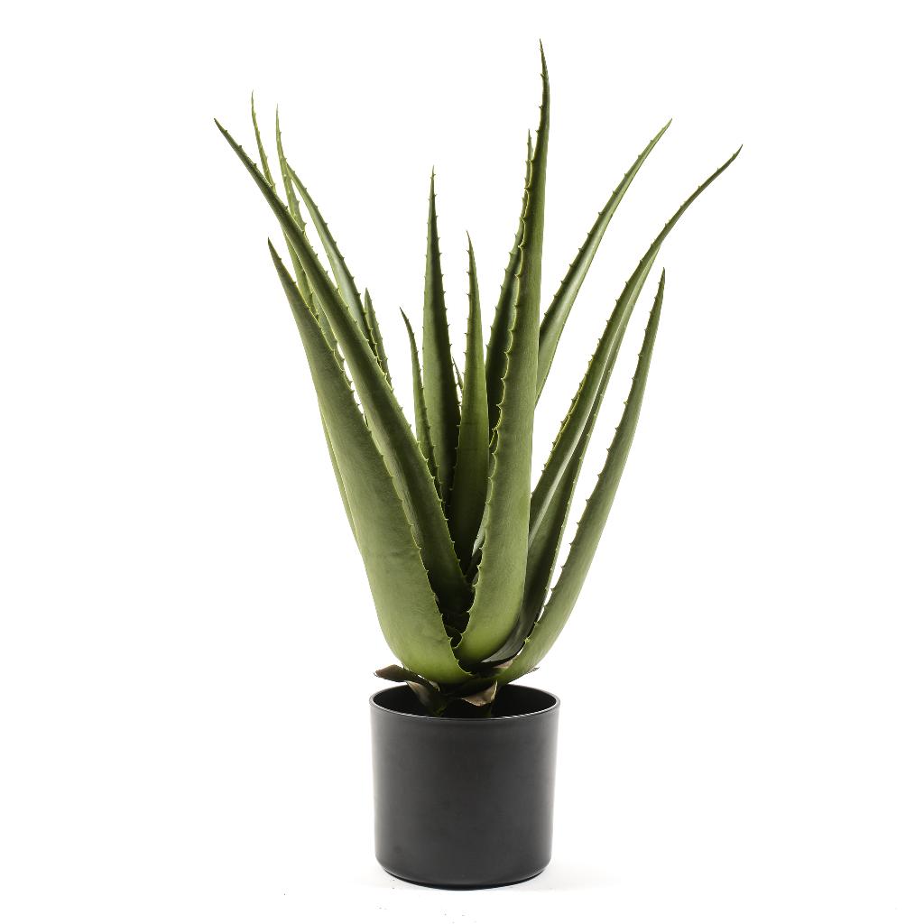 Aloe con vaso, pianta artificiale decorativa verde da 60 cm per interno