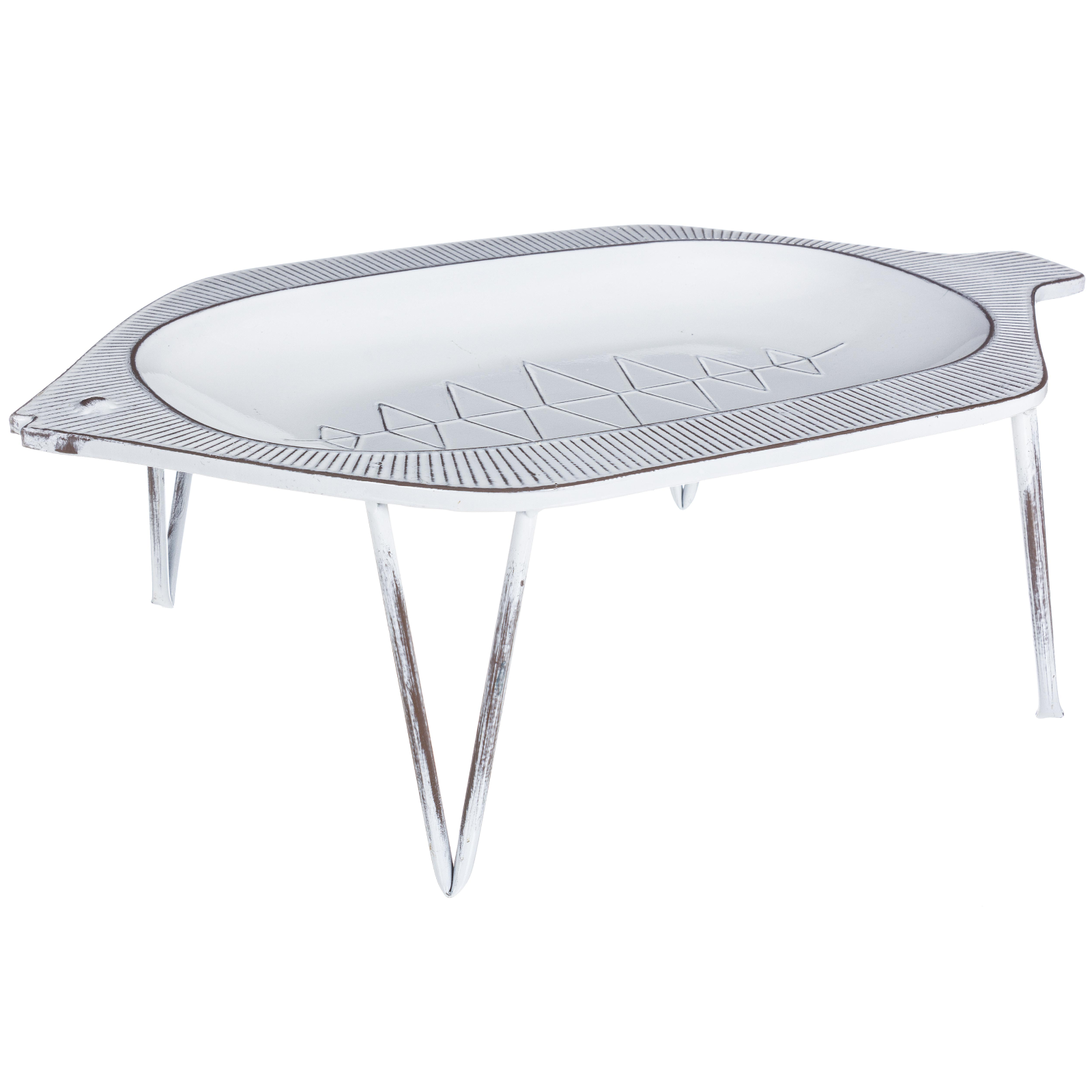 Il design caratteristico di questa alzatina presenta elementi ispirati al mare e alla pesca, con dettagli come pesci stilizzati o motivi a rete che conferiscono un'atmosfera costiera e fresca al tuo ambiente domestico.
