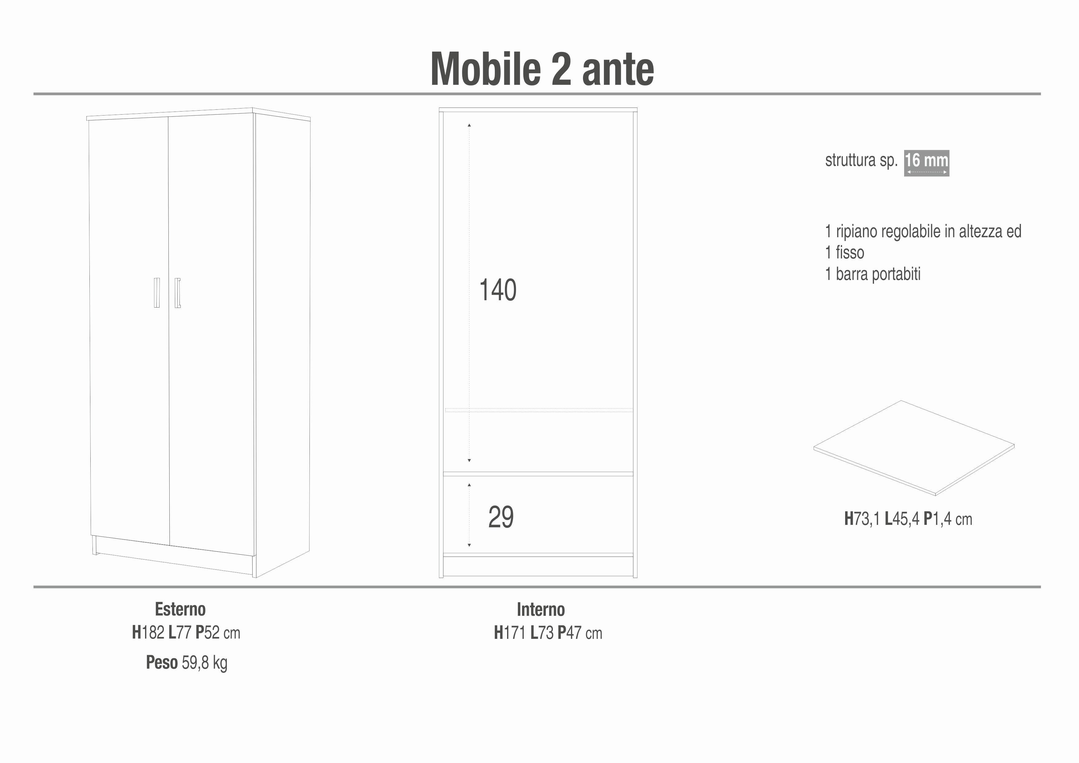 Perfetto per chi cerca una soluzione compatta ma funzionale, questo armadio offre ordine, praticità e un’estetica semplice, adatta a ogni ambiente della casa.
