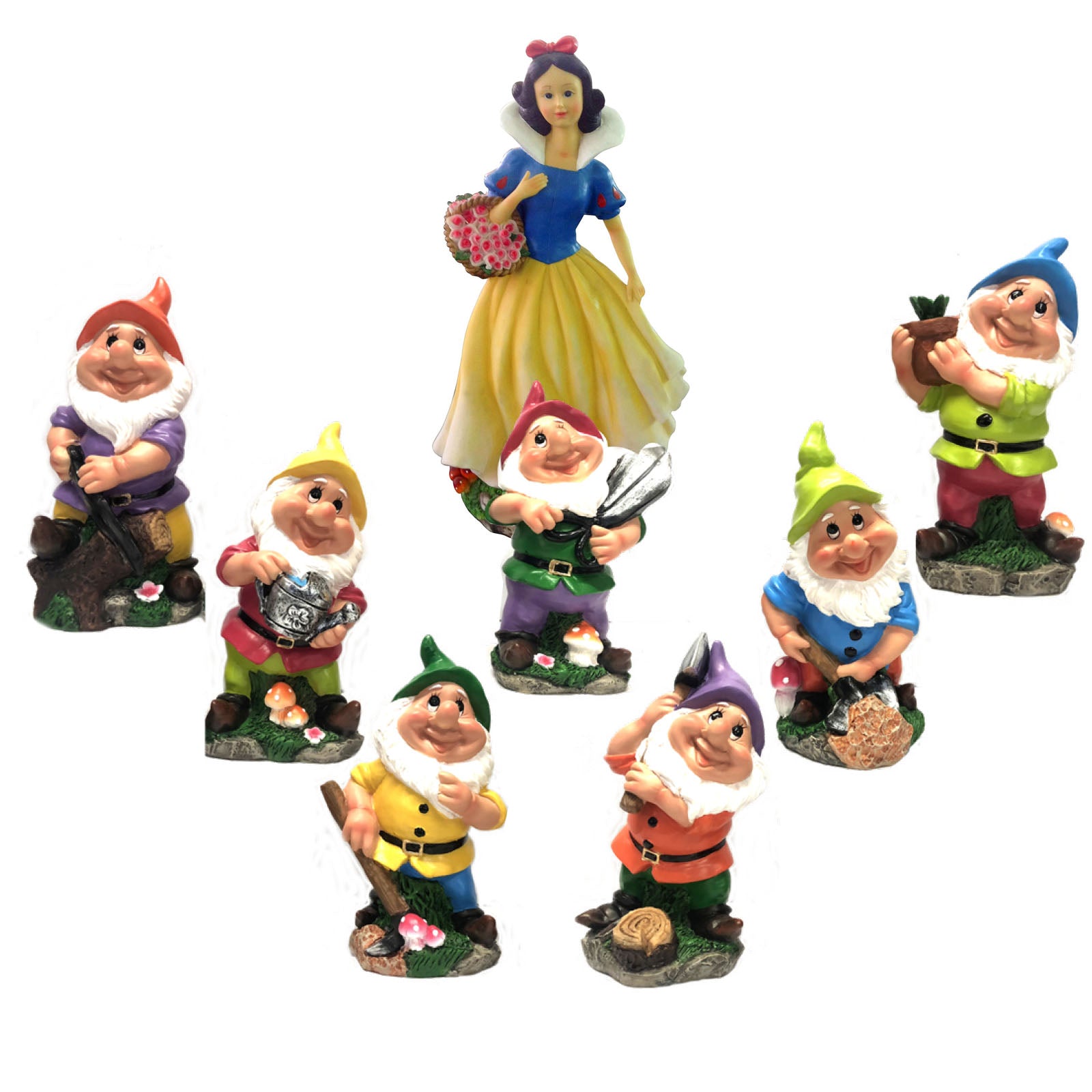 Biancaneve ed i sette nani in poliresina da giardino nanetti per aiuola h 44 cm
