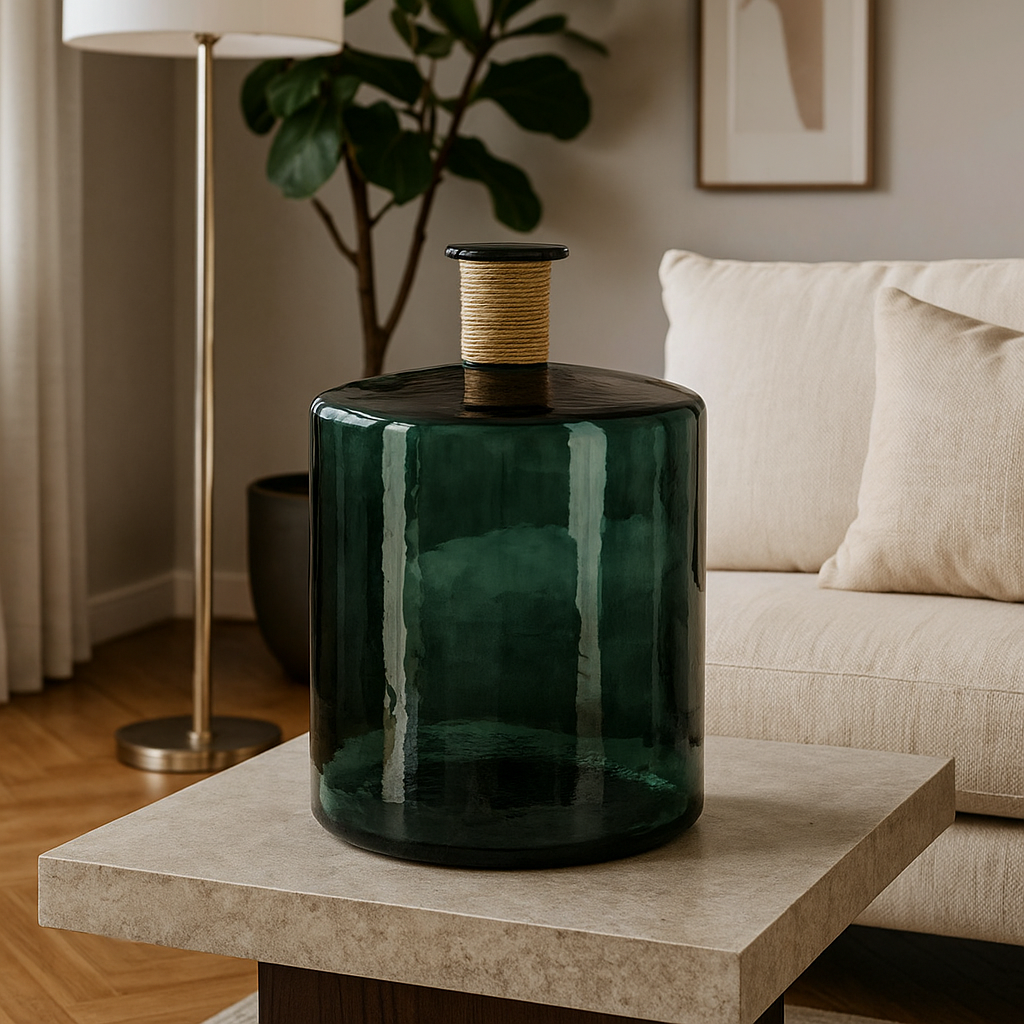 Bottiglia decorativa "Rotang" in vetro per arredo interno e uso decorativo