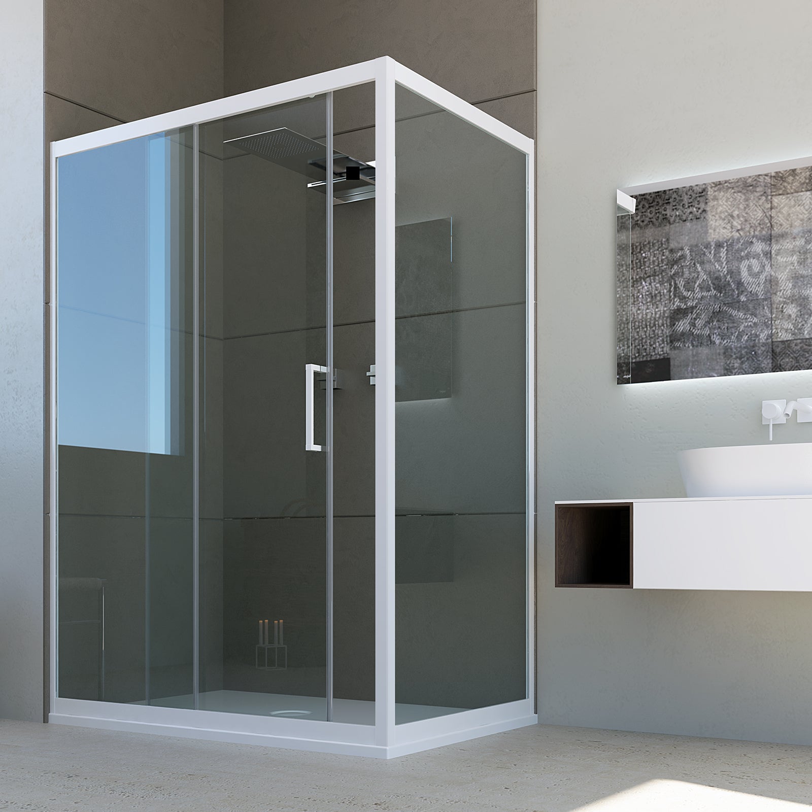 Box doccia in cristallo trasparente e profili in PVC | Modello Aurora