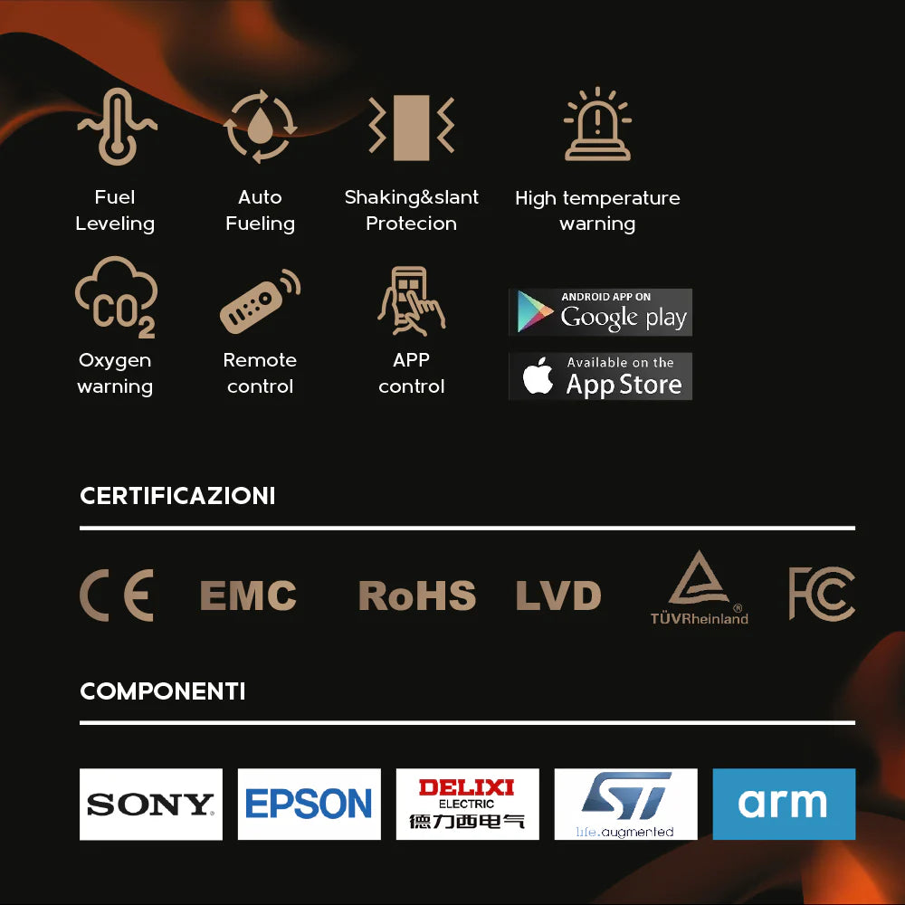 L'inserto per camino SMART Divina Fire è realizzato con materiali di alta qualità, che ne garantiscono la durevolezza e la longevità. Il design elegante e moderno aggiunge un tocco di raffinatezza a qualsiasi ambiente, mentre la funzione di controllo remoto tramite telecomando o APP offre praticità e facilità d'uso.