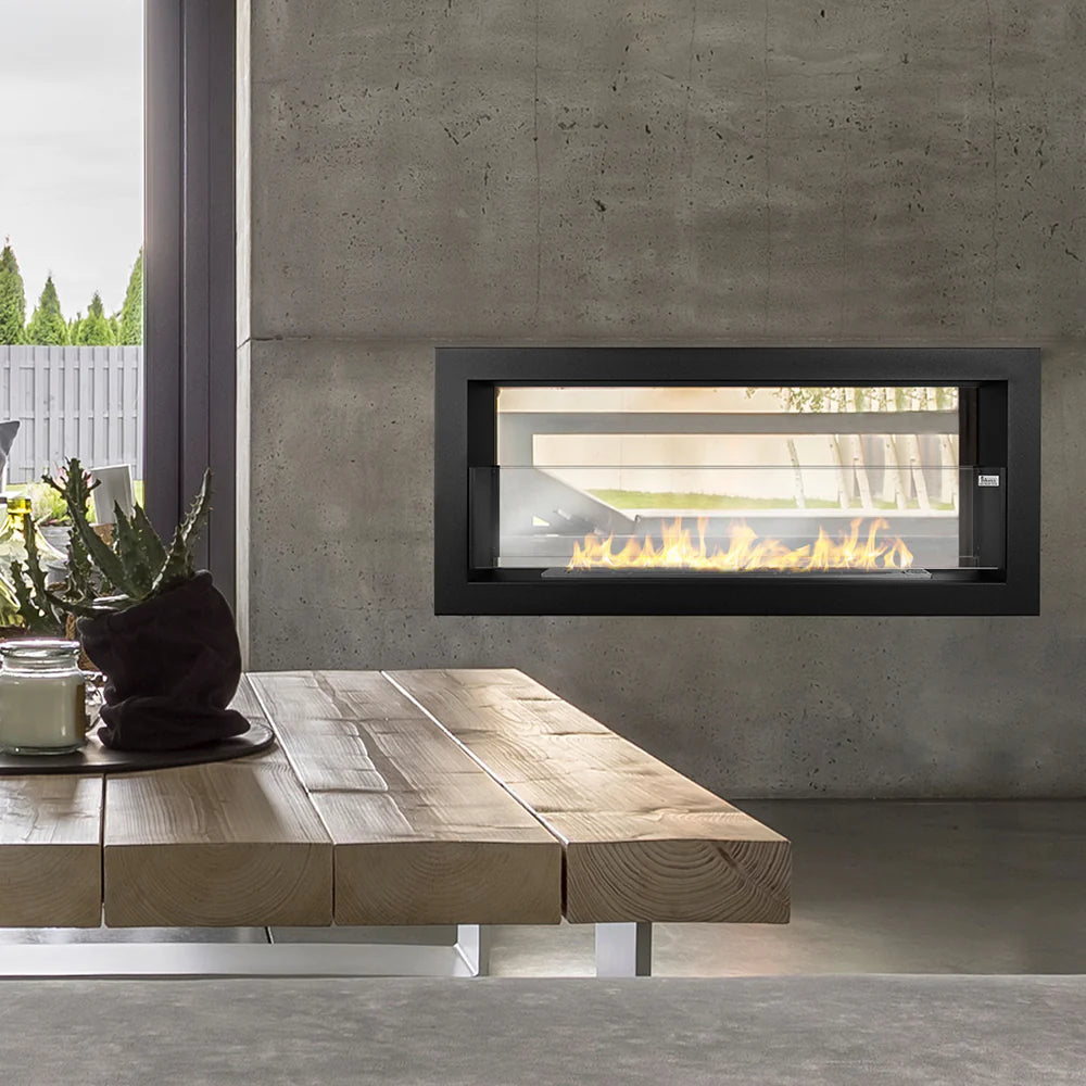 Camino a Bioetanolo da incasso Bifacciale "Montefalco" in Acciaio con vetro da 3 Kw arredamento Moderno 90 cm