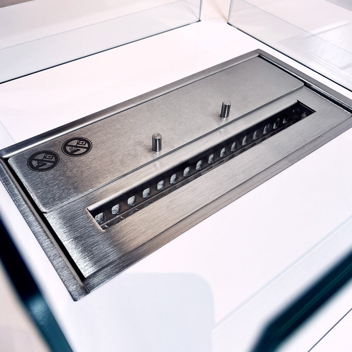 Il singolo bruciatore in acciaio inox 430SS certificato in Germania TUV assicura una fiamma sicura e persistente. Il suo spessore di 2mm e la sua singolarità sono le caratteristiche in più che rendono unico, sicuro ed efficiente il biocamino.