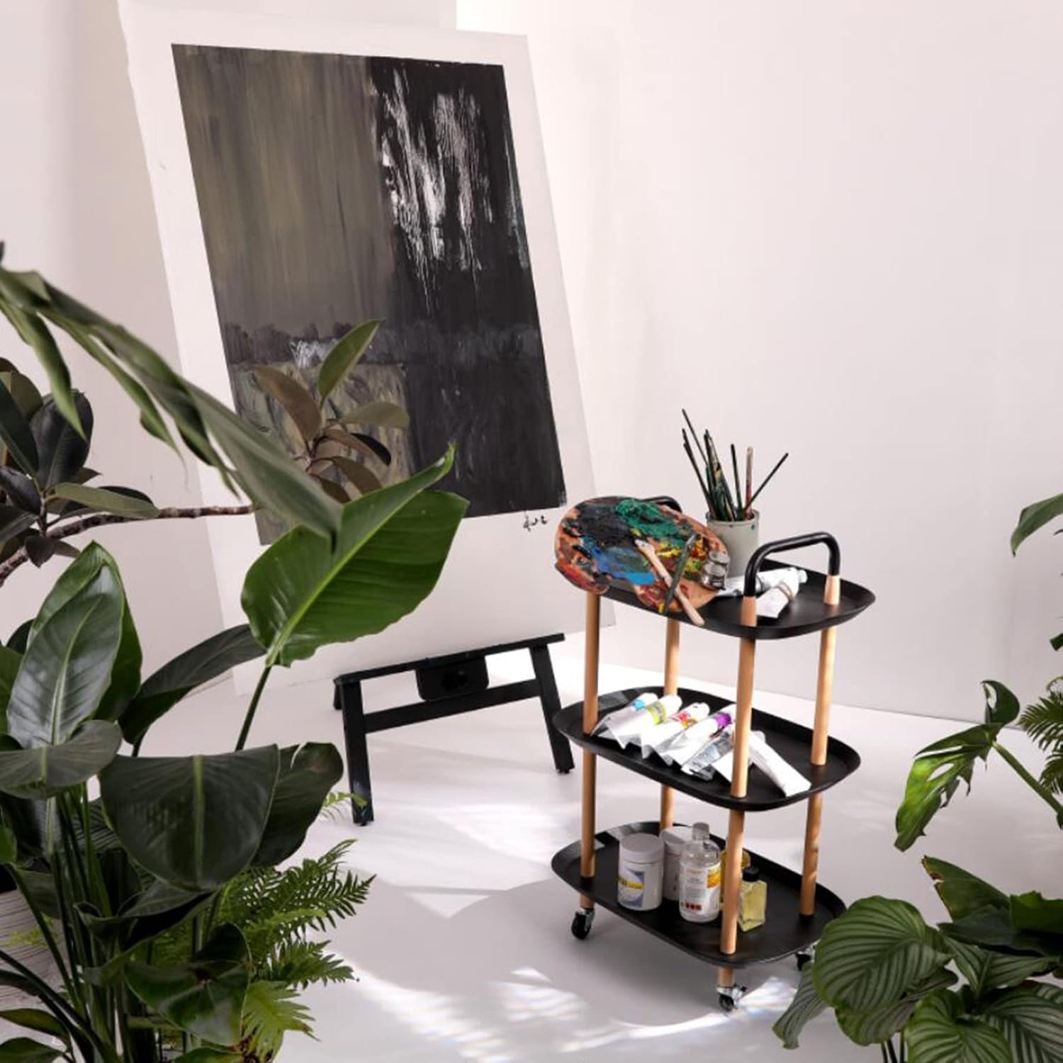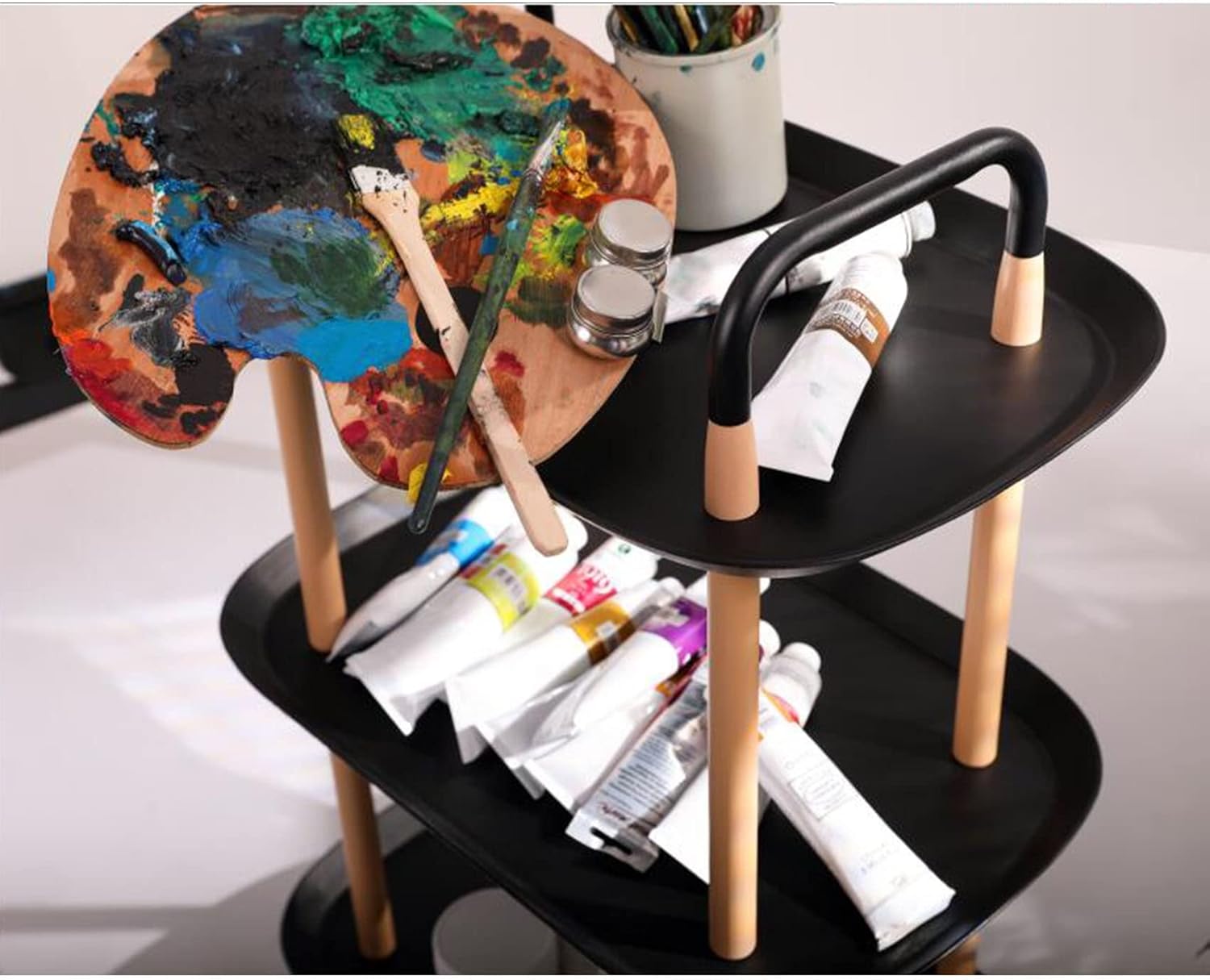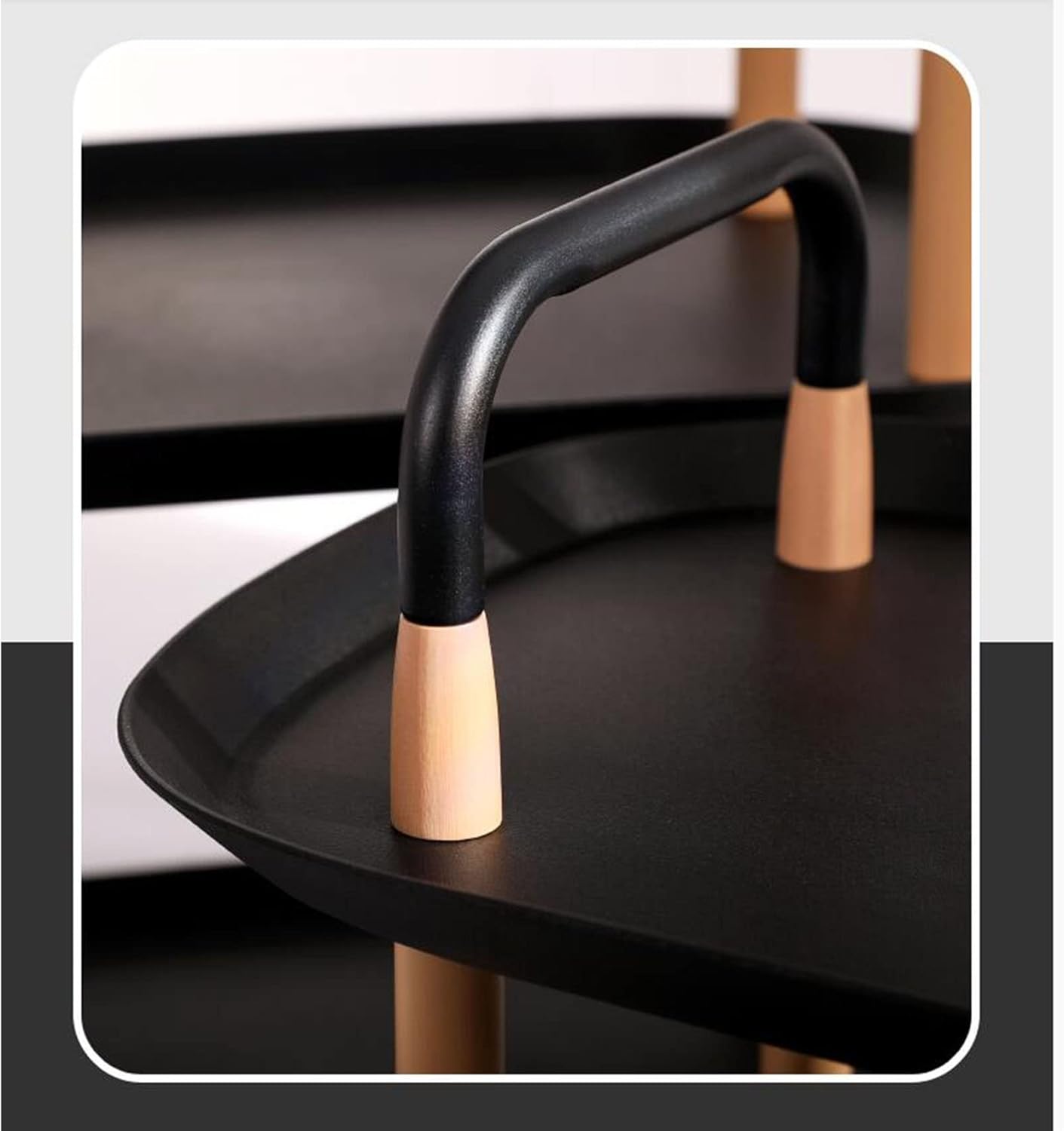- Materiale: Plastica nera per i ripiani e struttura in legno resistente.