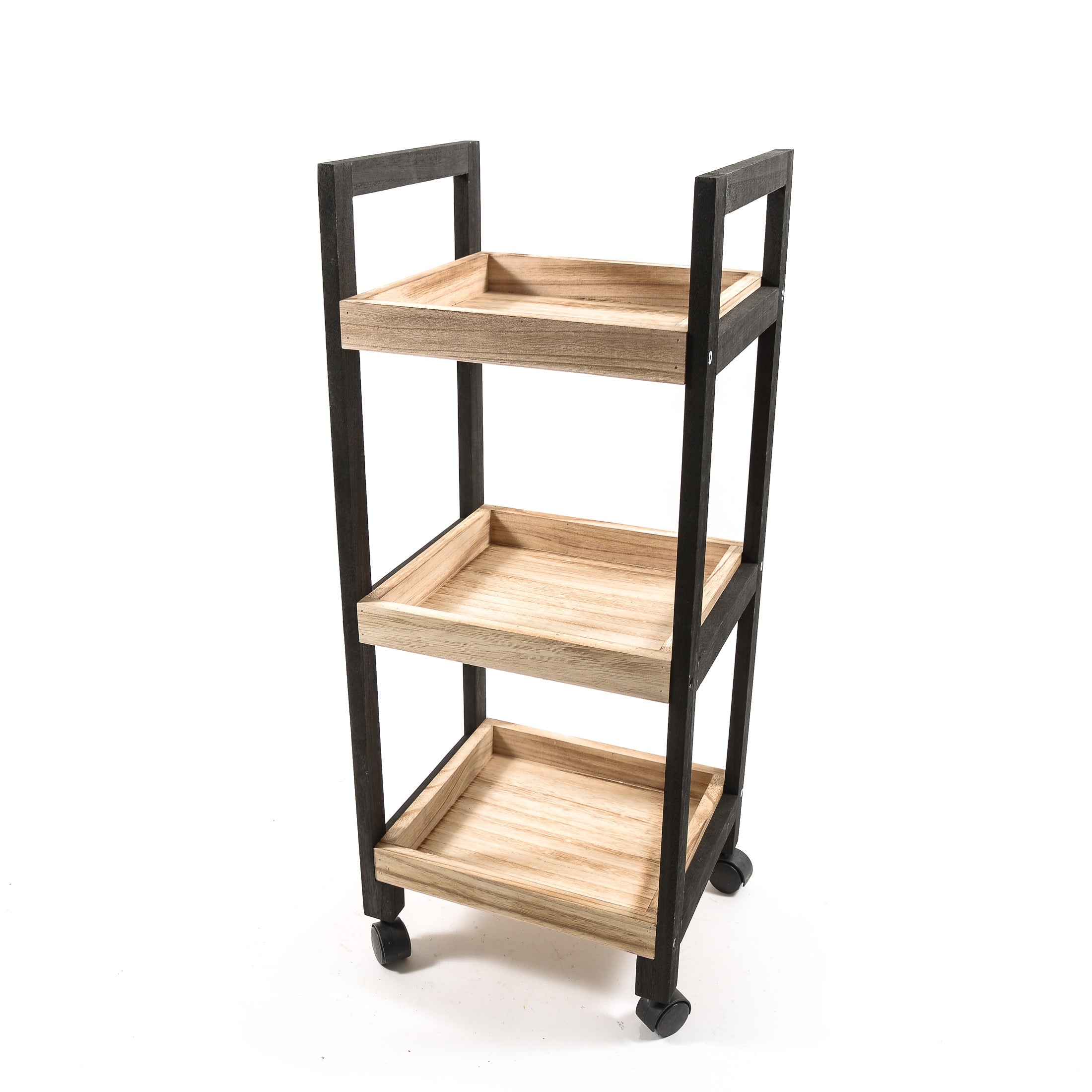 Carrello in legno con 3 ripiani e ruote scaffale multiuso da 80 cm