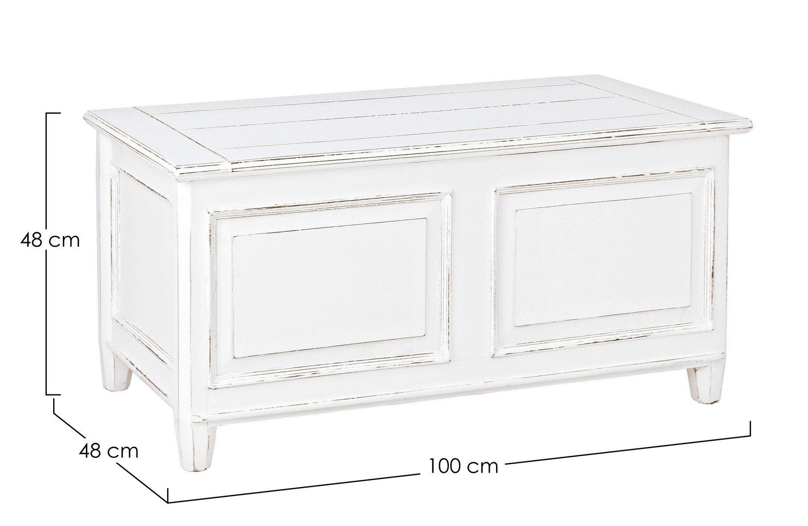 Con dimensioni di 100 x 48 x 48 cm, questa cassapanca offre un'ampia capacità di stoccaggio, perfetta per coperte, cuscini o oggetti vari.