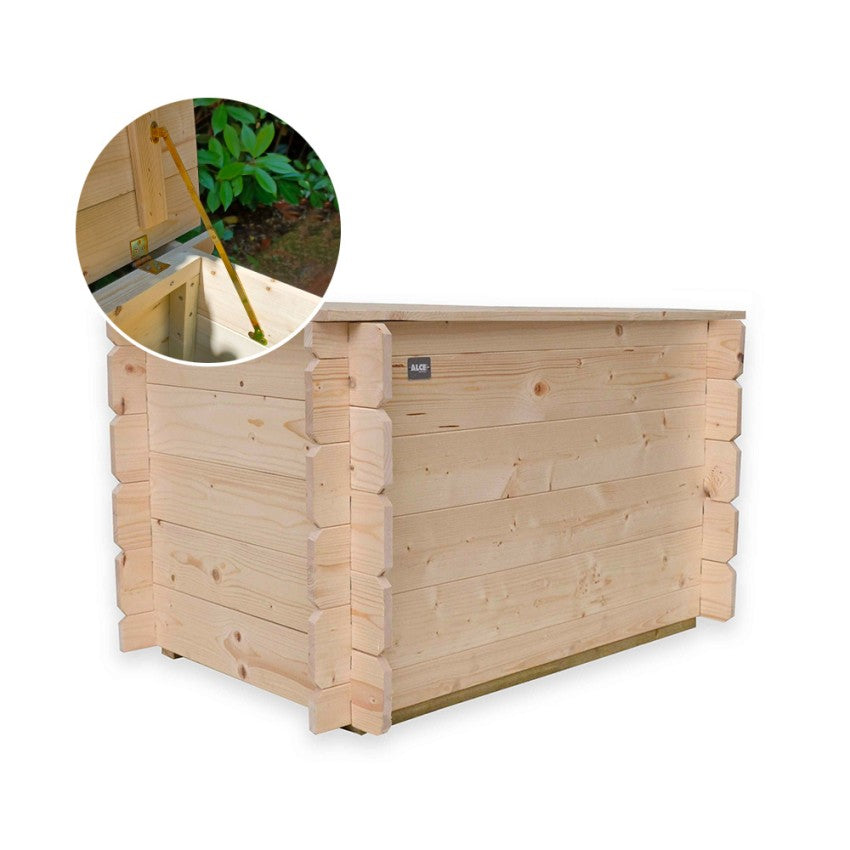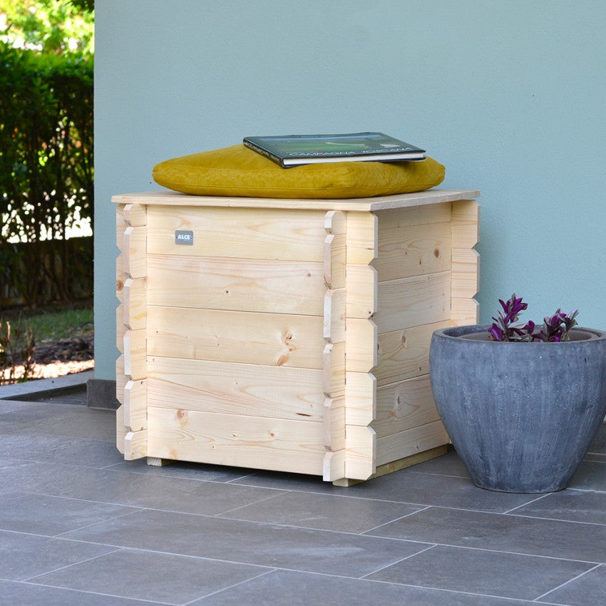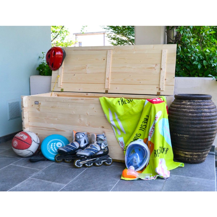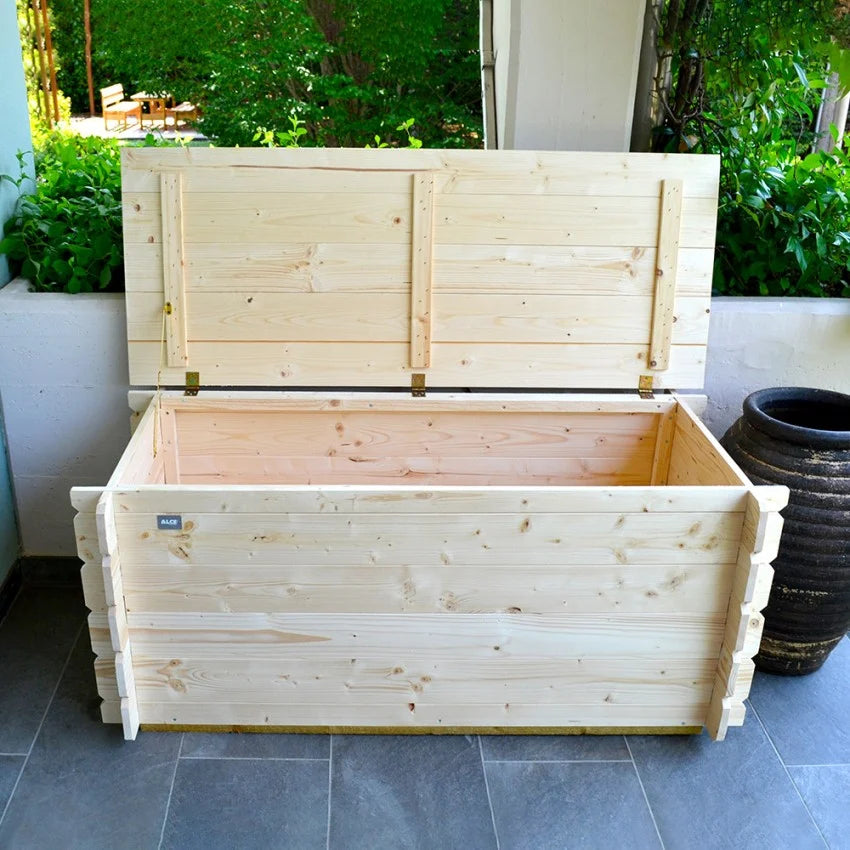 La cassapanca è realizzata in legno di abete, duro e resistente, perfetto per l’esterno e garantisce anni di utilizzo sicuro.