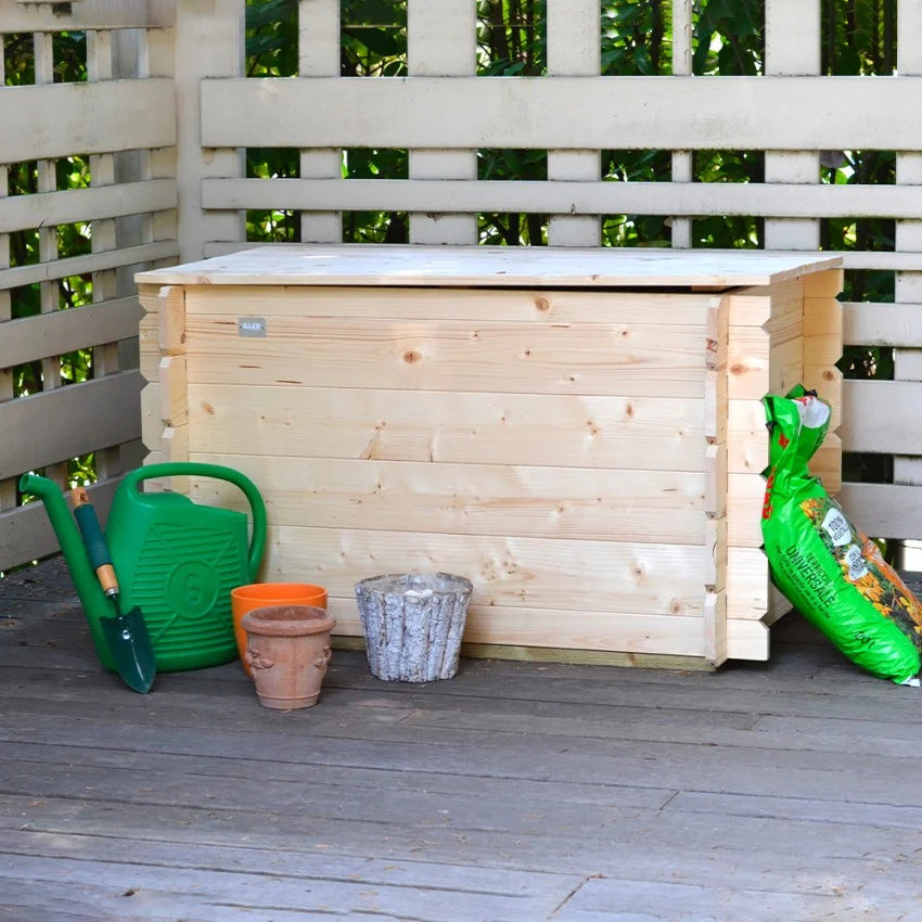 L’aspetto naturale e gradevole alla vista ti permette di inserire il baule con successo in ogni tipo di ambiente aperto, inoltre potrai decidere di dipingerlo come preferisci, meglio se con un trattamento per l’esterno.