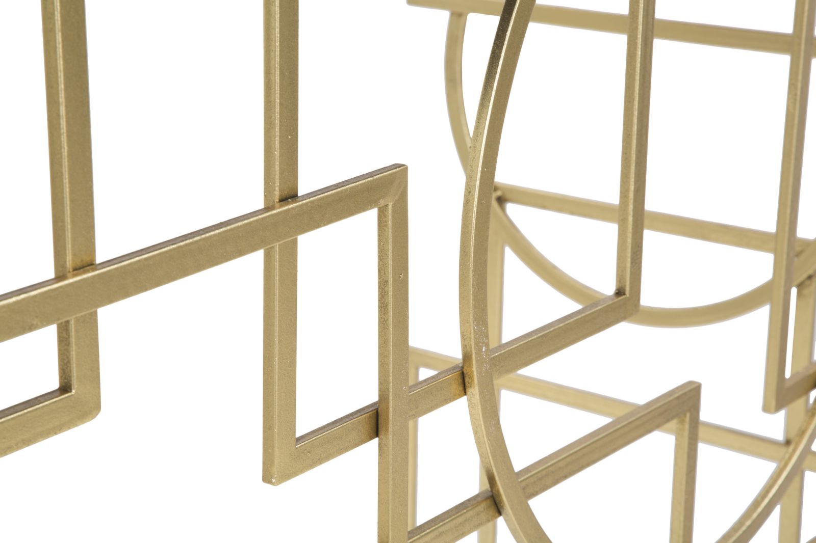 La console "Marie" è un elegante complemento d'arredo progettato per ambienti interni. La sua struttura è realizzata in ferro, conferendole solidità e raffinatezza, ed è caratterizzata da una finitura color oro che aggiunge un tocco di lusso ed eleganza al design complessivo.