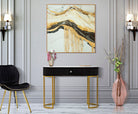 Il vero protagonista di questa console è il ripiano superiore in marmo, che eleva l'intero design conferendogli una sensazione di lusso e prestigio.