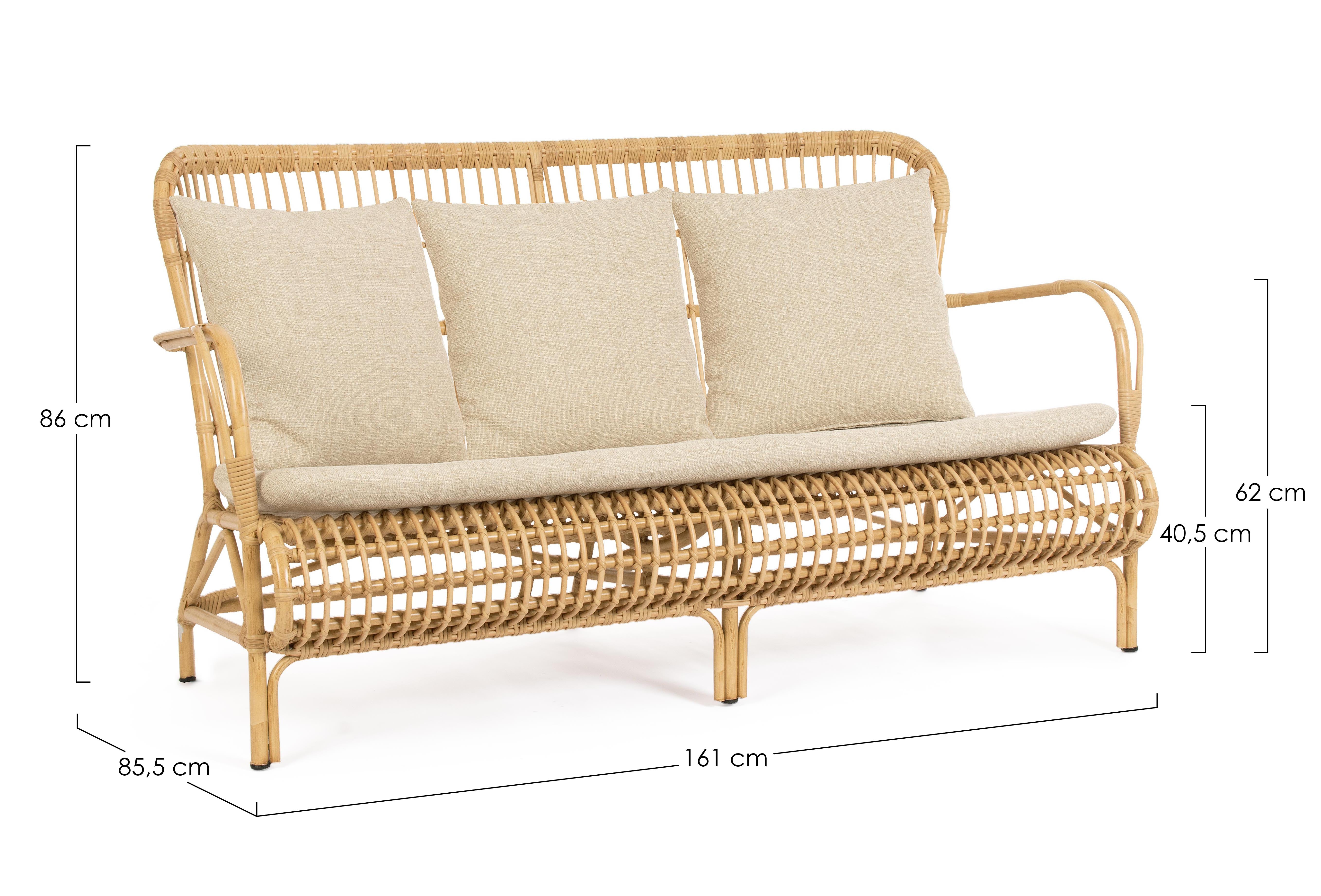 L'intreccio del divano è realizzato in fibra sintetica con diametro di 10mm, garantendo solidità e stabilità alla struttura.