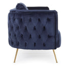 Divano in velluto Blu 2 posti "Tenbury" tipo Chester con piedi ottone 144 cm