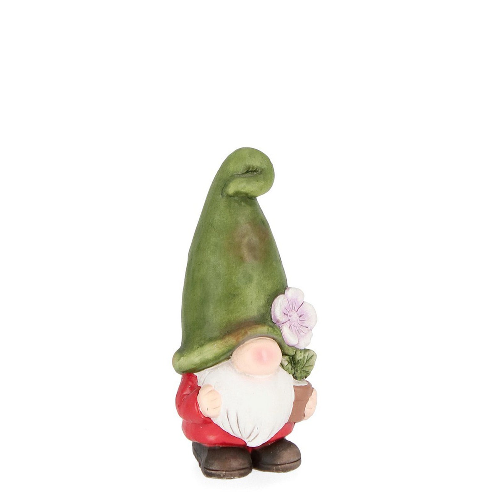 Il Gnomo da giardino è un oggetto decorativo per esterni realizzato in terracotta, rappresentante un simpatico gnomo con un fiore in mano.