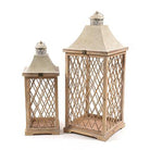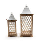 Kit 2 Lanterne decorative in legno e metallo con portacandela decorato h 76 cm