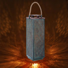 Lanterna in acciaio con decoro con interno ORO e con manico in corda di juta