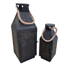 Lanterna in acciaio con decoro con interno ORO e con manico in corda di juta