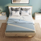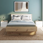 Letto moderno matrimoniale "Mundi" struttura in legno rovere e bianco con spalliera