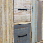 La combinazione di tonalità multicolori e la struttura solida in legno conferiscono al mobile Fred un aspetto accattivante e resistente. Le sue dimensioni equilibrate lo rendono un arredo versatile e pratico, capace di adattarsi a diversi contesti abitativi, portando con sé stile e funzionalità.