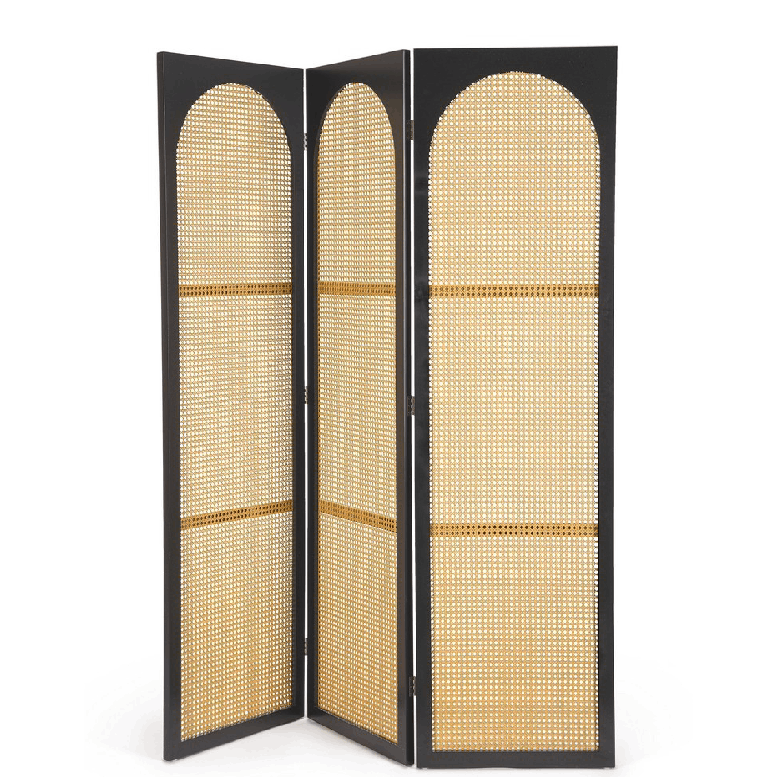 Paravento 3A josine nero in struttura in legno di pino, inserto di rattan 150 x 2 x 180 cm