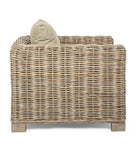 La poltrona "Fortaleza" è un elegante e confortevole pezzo di arredamento da esterno, dotato di una solida struttura in legno di mango e rattan, intrecciato in kubu per donare un tocco di stile e originalità.