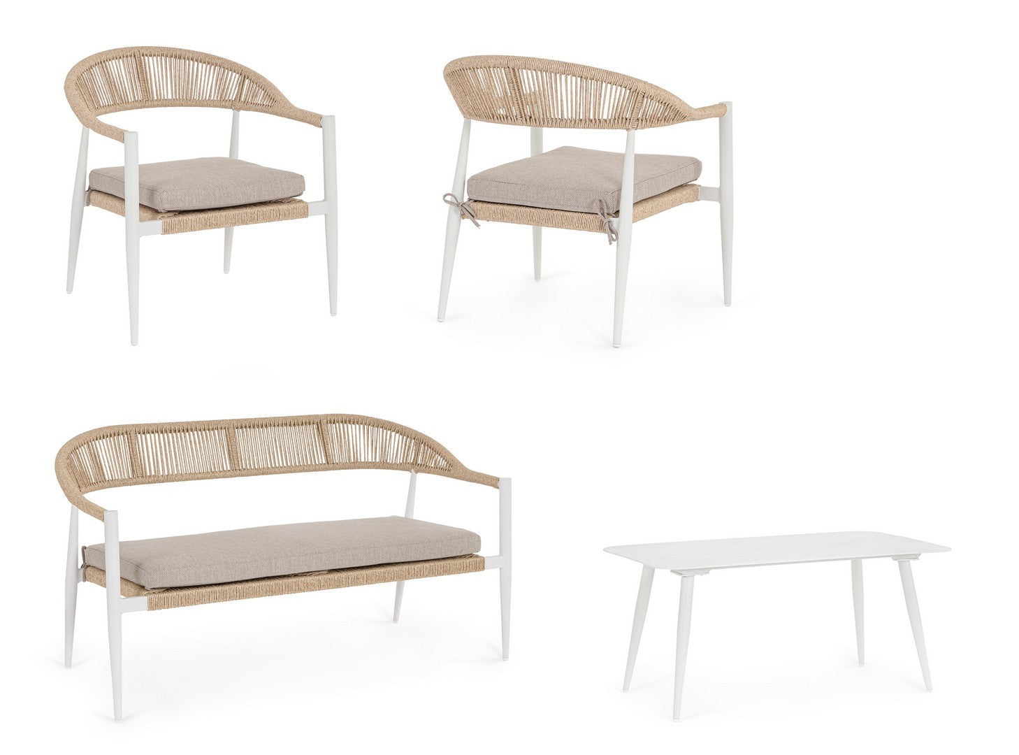 Salotto con poltrone e tavolino "Jandia" struttura in alluminio per veranda e giardino