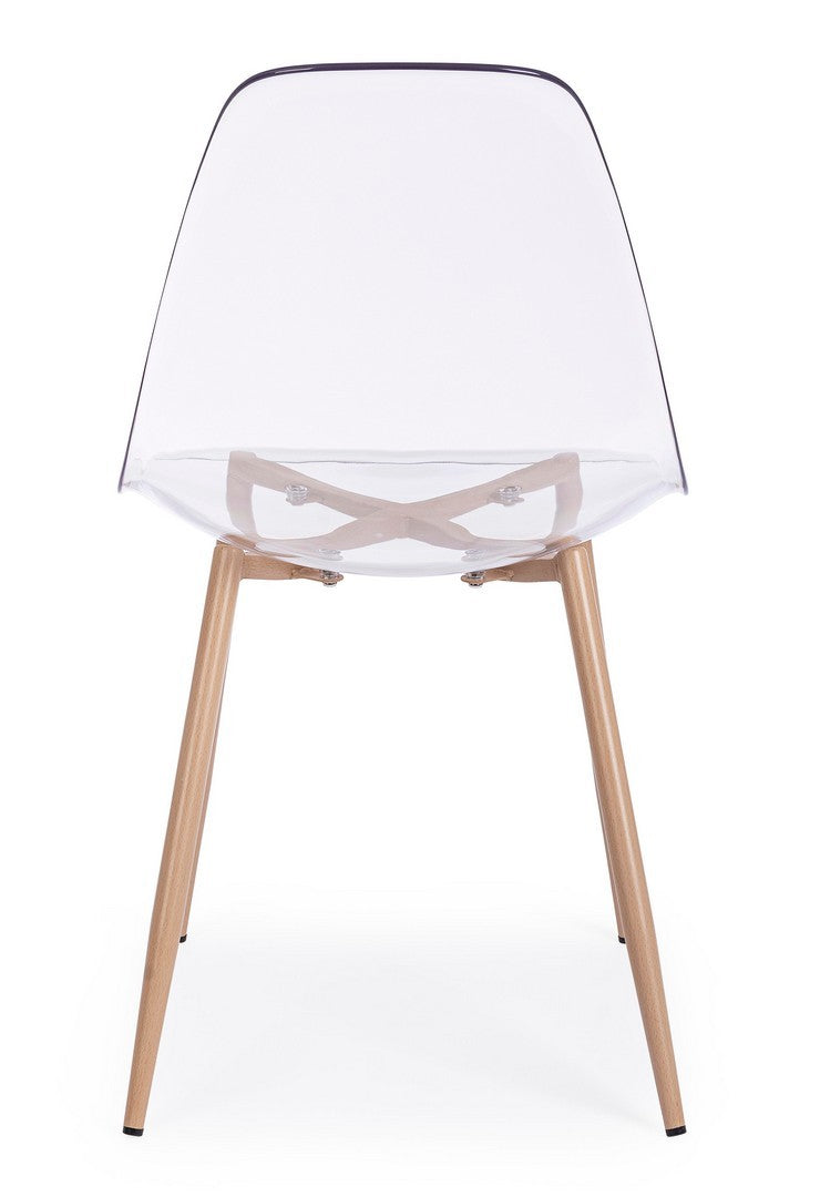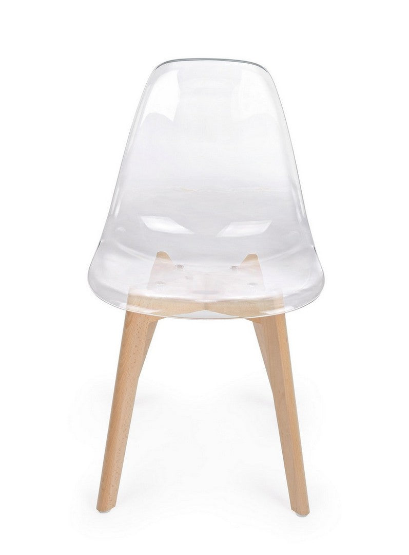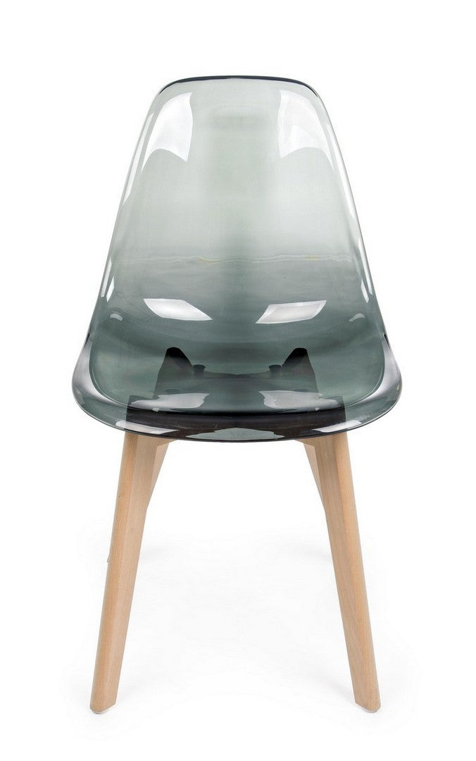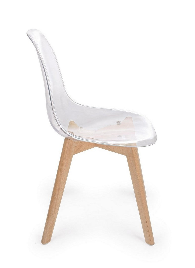La sedia in policarbonato trasparente, combina le linee di un design classico con l'uso di materiali industriali per la realizzazione.