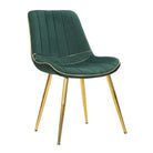 Le gambe della sedia sono realizzate in metallo e presentano un finitura color oro, conferendo un tocco di lusso e raffinatezza al design complessivo.