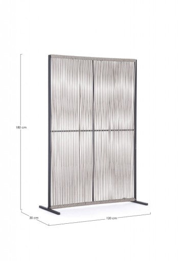 Il separè paravento "Paxson" viene fornito con piedini da assemblare, che consentono di stabilizzare la struttura e mantenerla salda in posizione. Ciò offre flessibilità nell'installazione del separè, che può essere posizionato in diversi ambienti esterni, come patio, giardini o balconi.