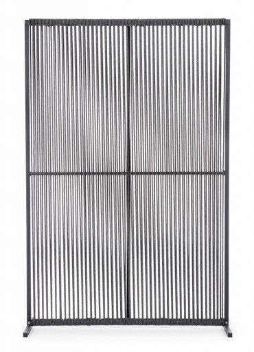 In sintesi, il separè paravento "Paxson" è caratterizzato da una struttura in alluminio verniciato a polvere e un intreccio in corda di olefin, offrendo resistenza, durabilità e un aspetto elegante. È progettato per essere utilizzato all'esterno e può essere montato facilmente grazie ai piedini inclusi.
