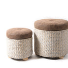 Set 2 Pouf contenitori tondi con seduta in ecopelle arredamento moderno