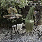 Set "Mosaico" Tavolino tondo con poltrone e decoro in ceramica ed acciaio verniciato a polvere per giardino veranda