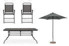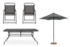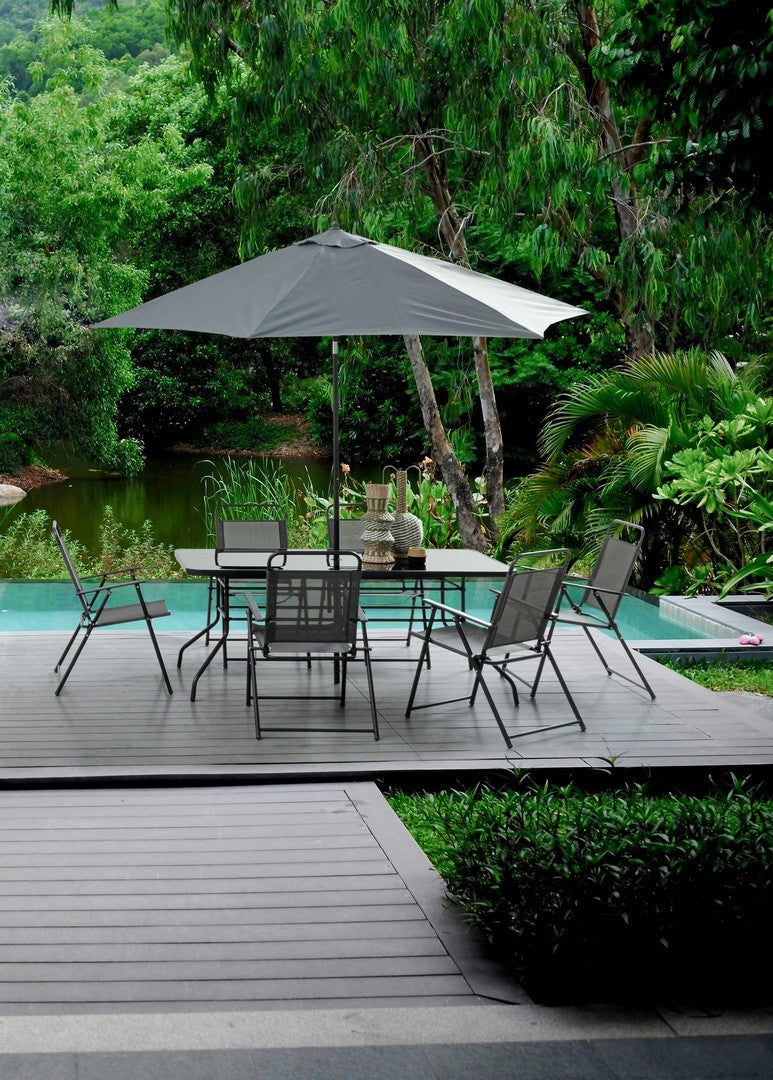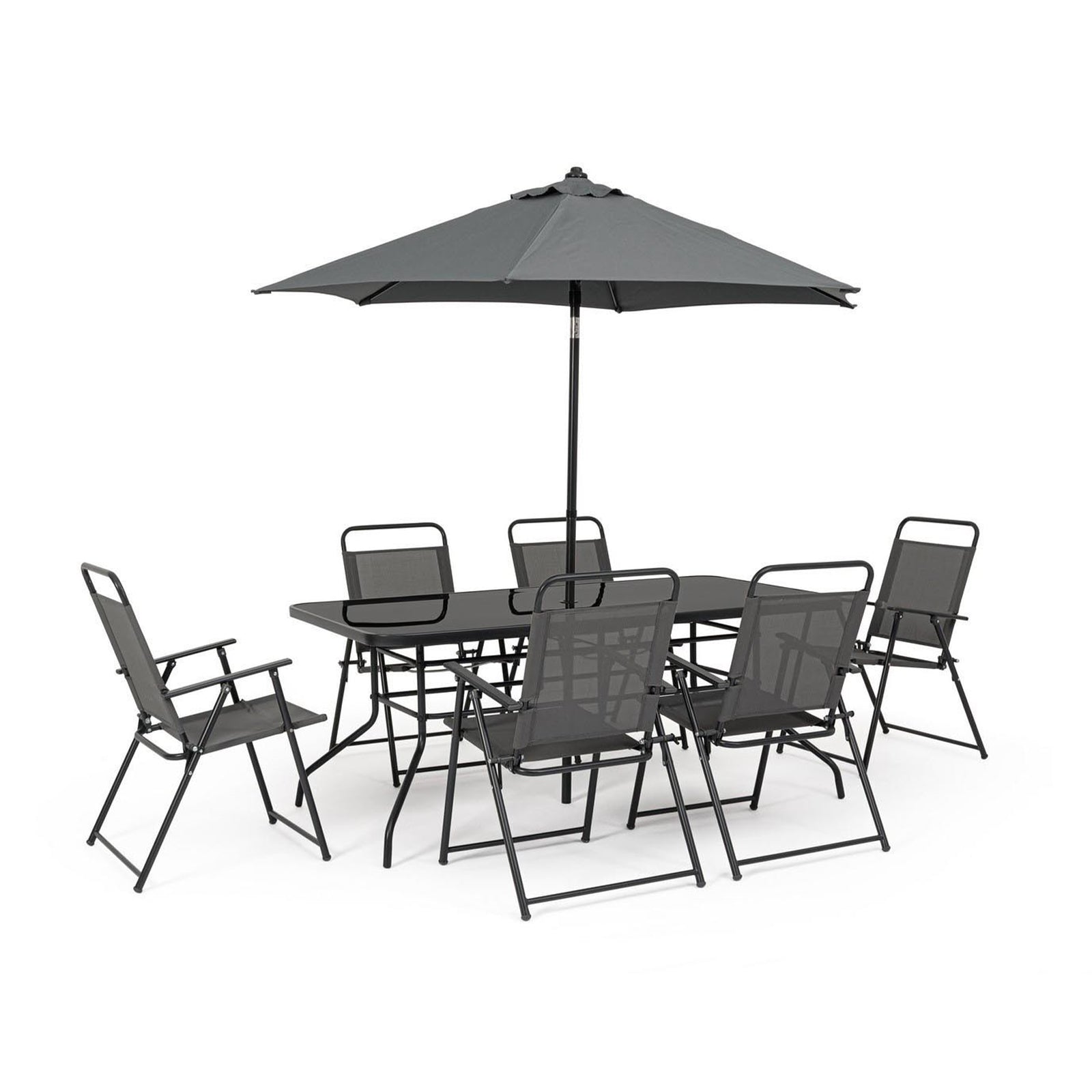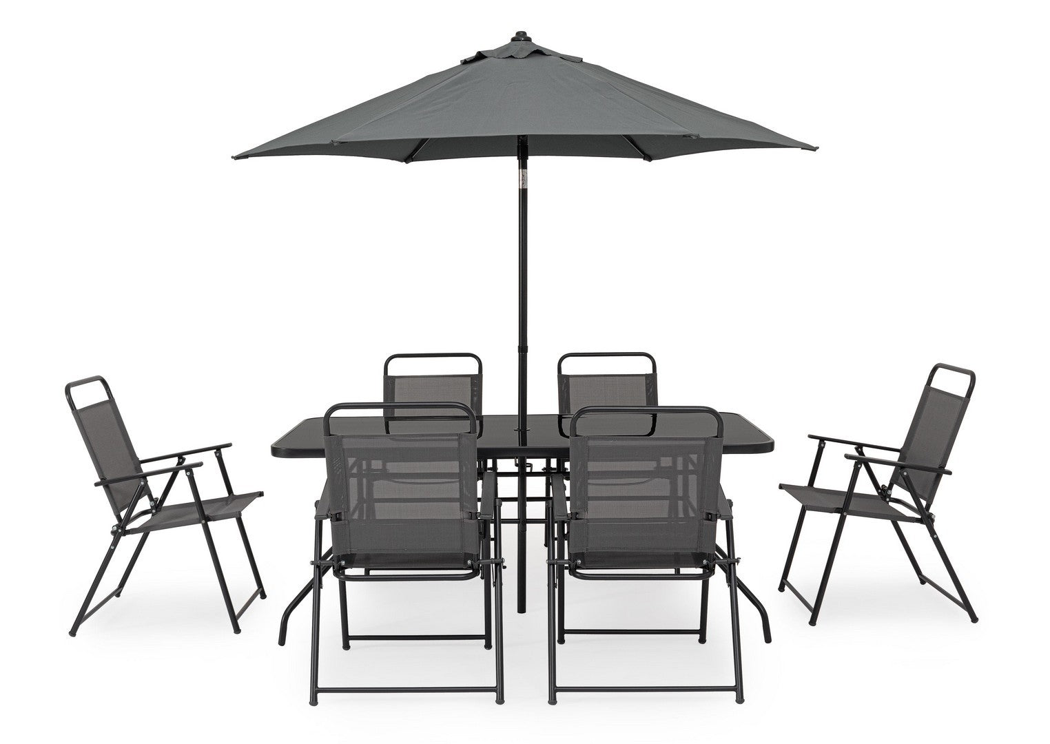 Set tavolo con 6 sedie e con ombrellone "Pompei" in alluminio verniciato antracite per esterno