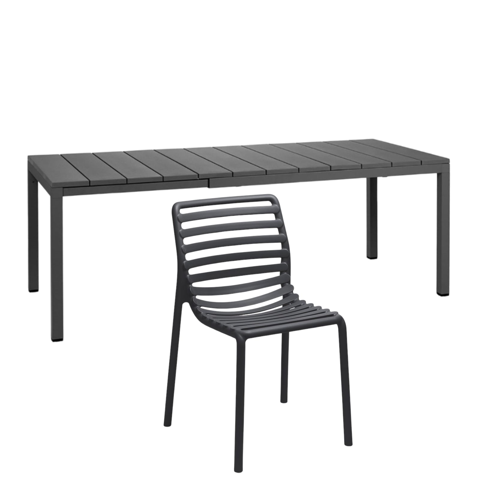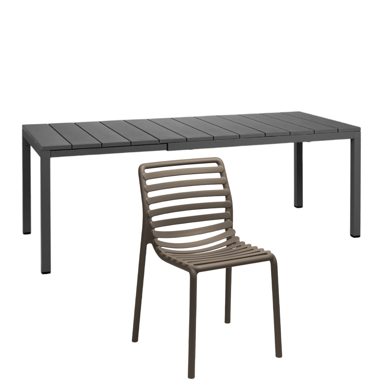 Scopri il set tavolo Rio Allungabile 140-210 cm con 8 sedie Doga la soluzione versatile e pratica per arredare sia interni che esterni. Perfetto per creare un ambiente accogliente e moderno in patio, giardino, sala da pranzo o terrazzo, questo set unisce funzionalità, comfort e design contemporaneo.