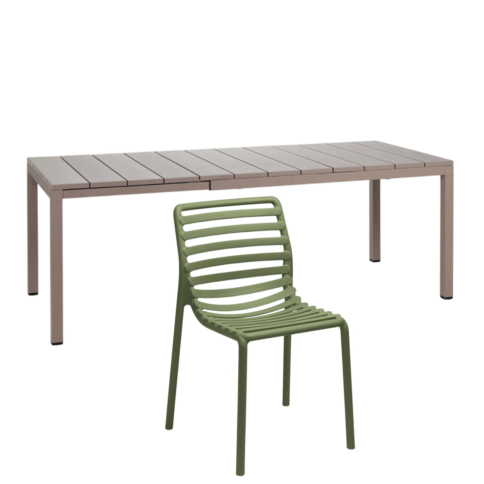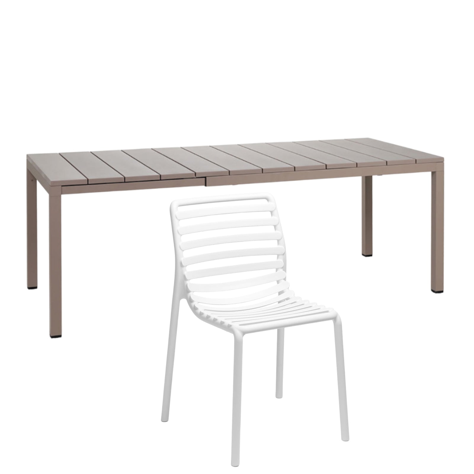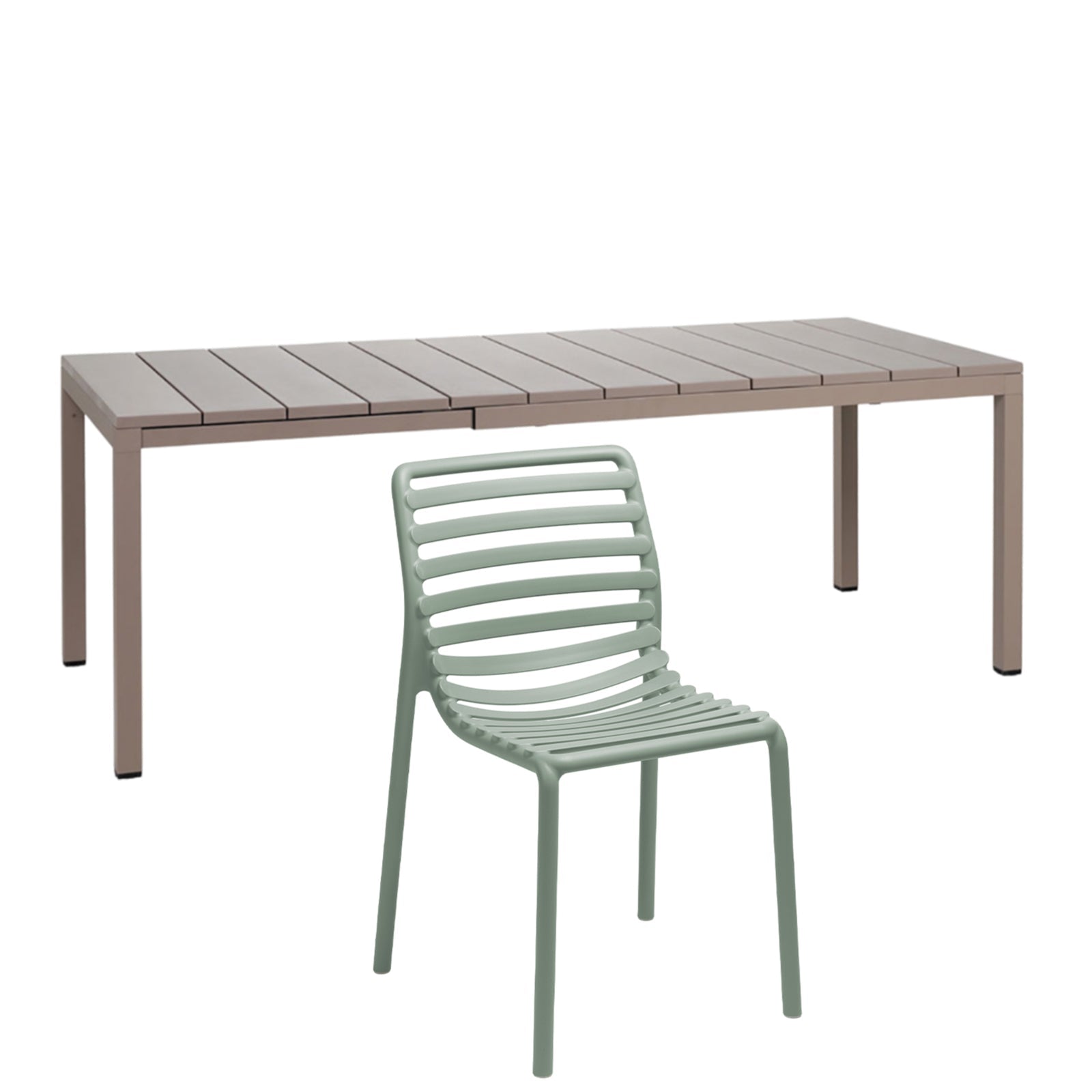 Set tavolo Rio Allungabile 140-210 cm con 8 sedie Doga Bistrot, per esterno e giardino