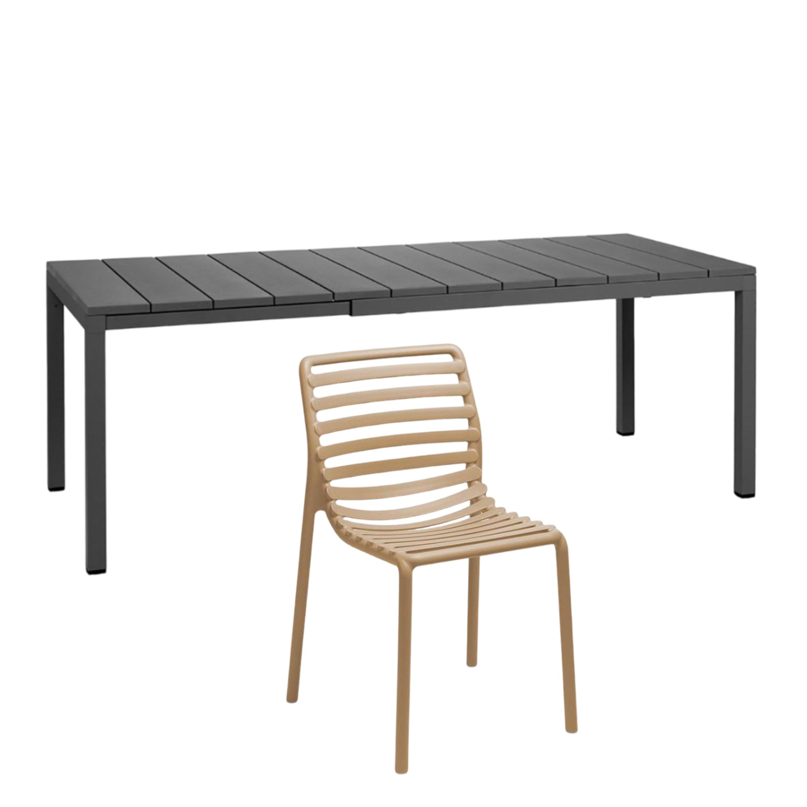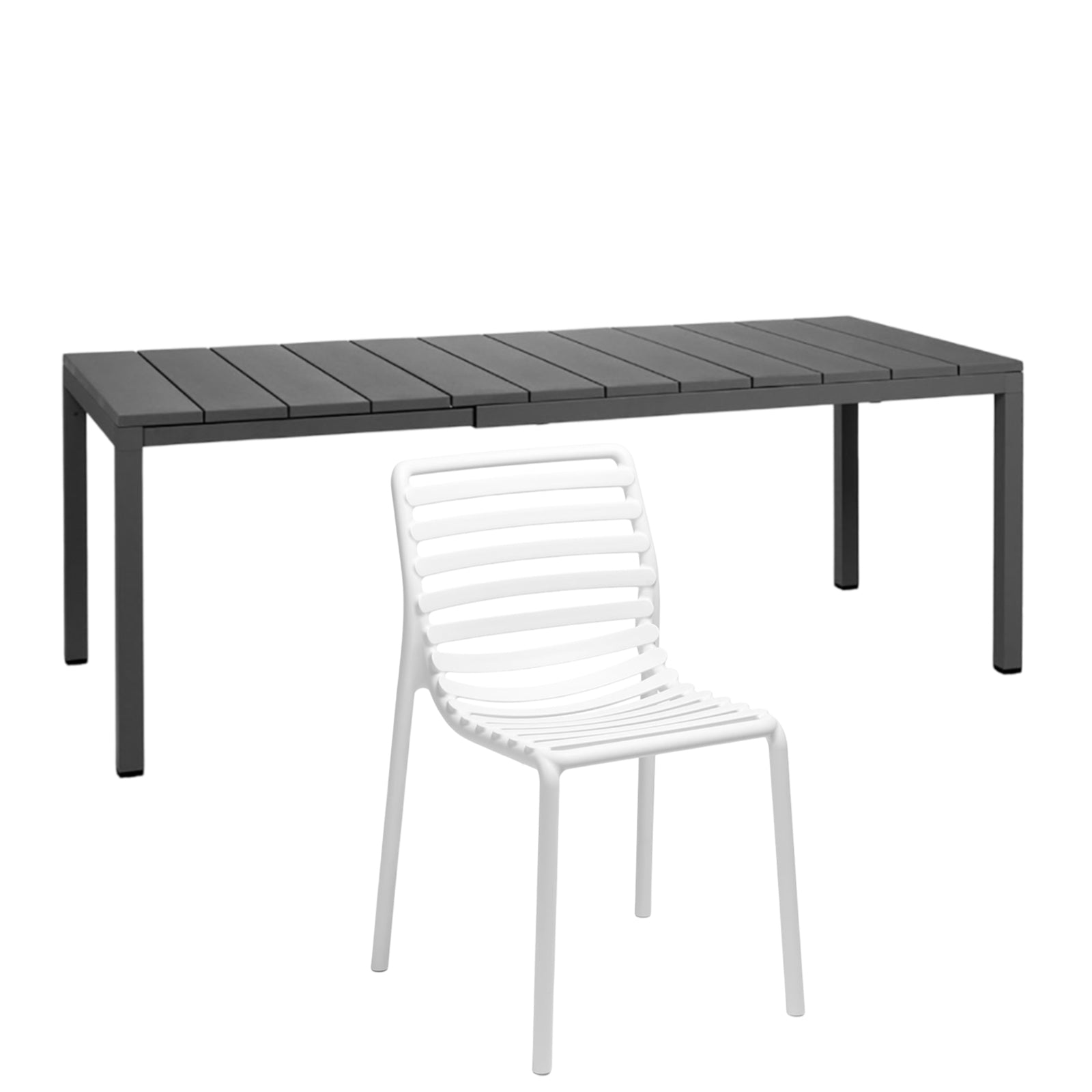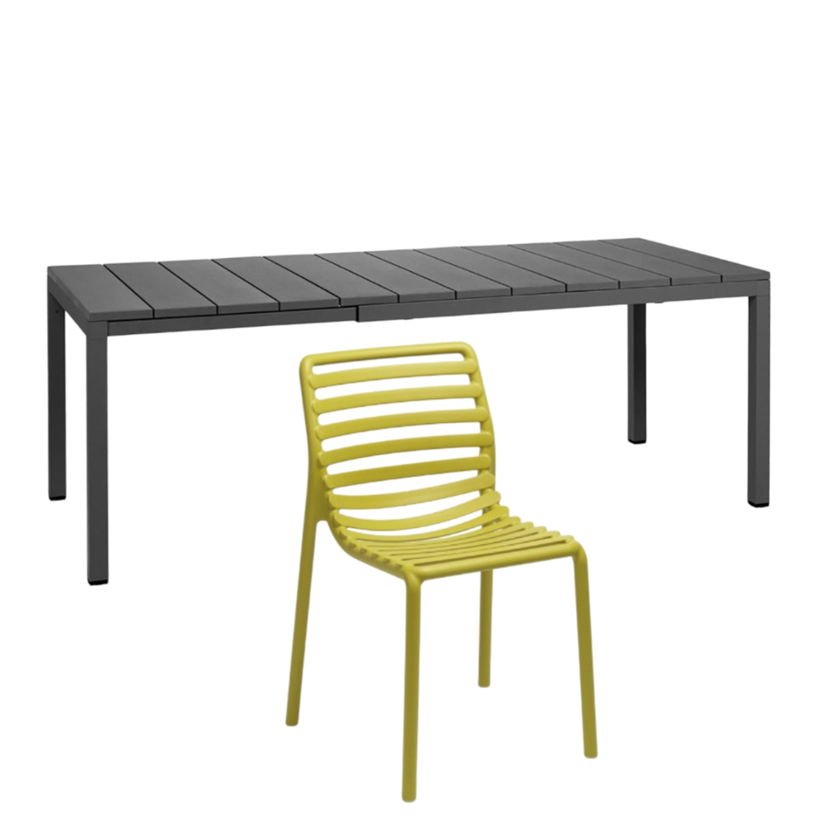 Set tavolo Rio Allungabile 210-280 cm con 6 sedie Doga Bistrot, per esterno e giardino