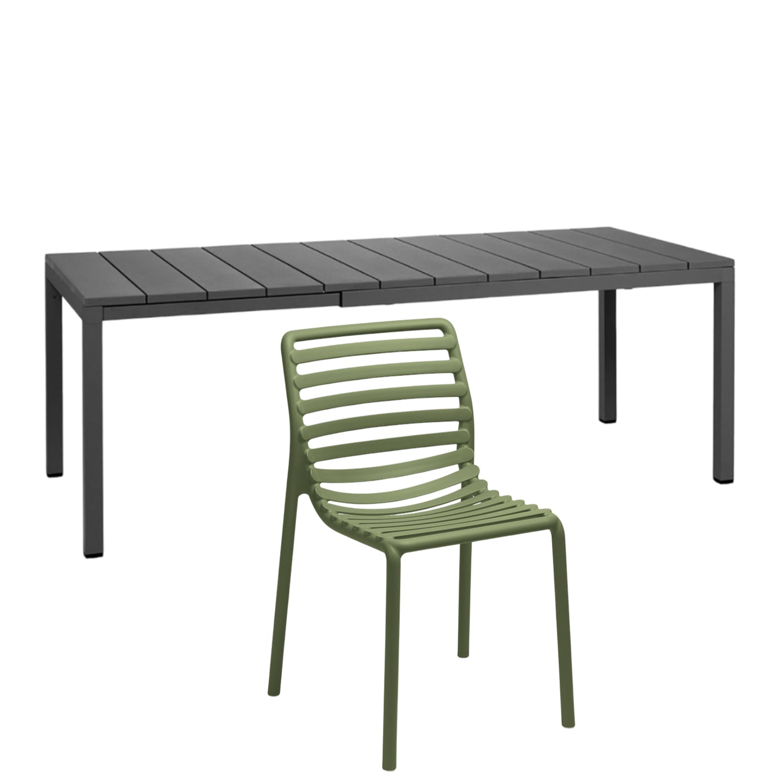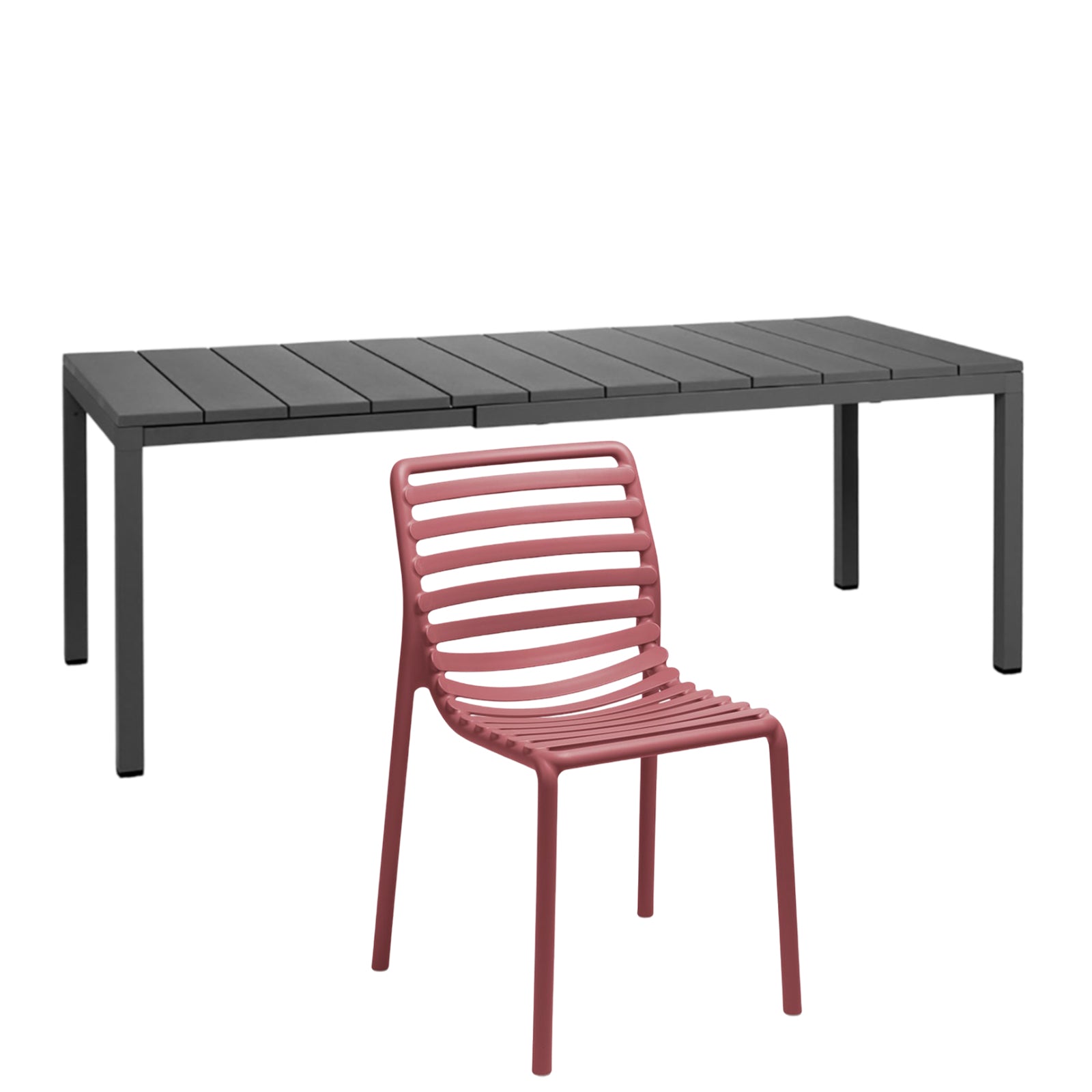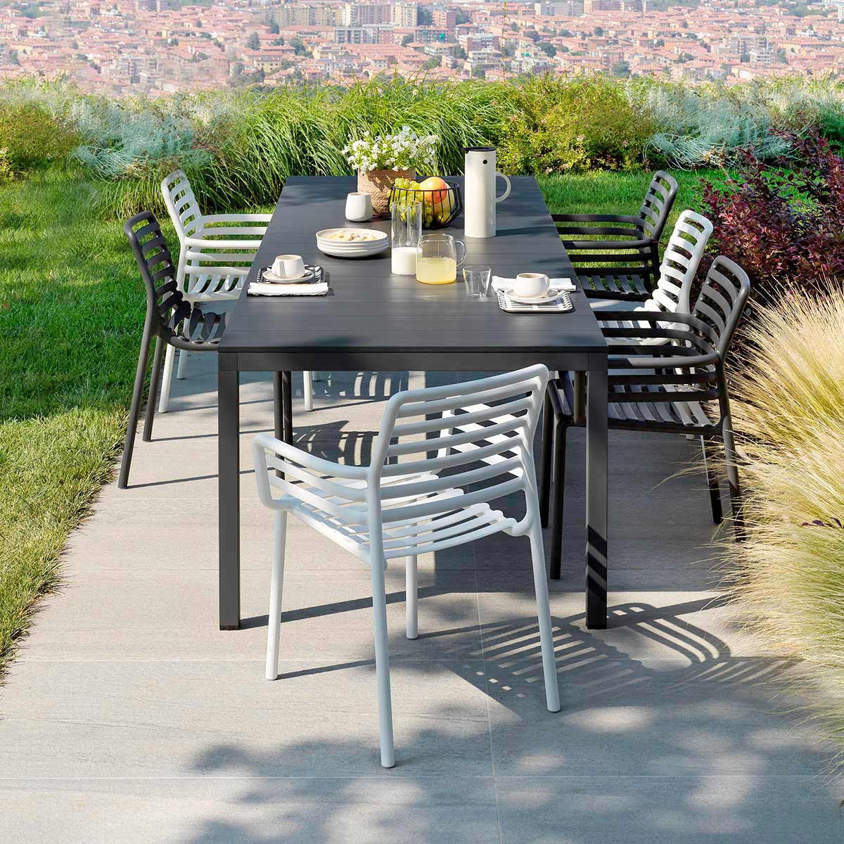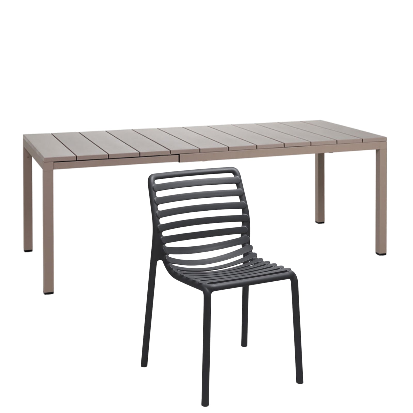 Set tavolo Rio Allungabile 210-280 cm con 6 sedie Doga Bistrot, per esterno e giardino