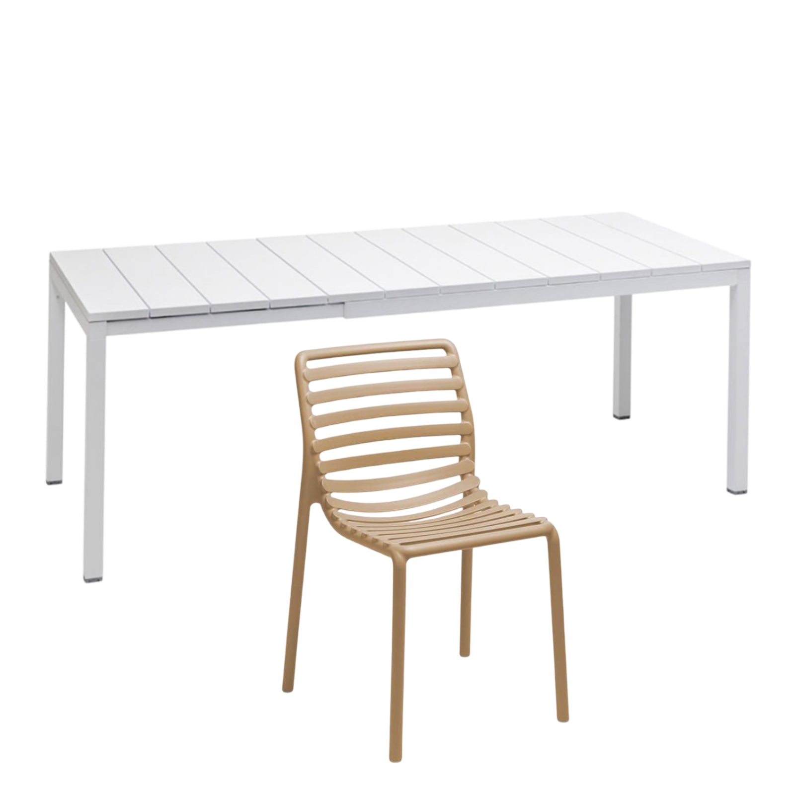 Rinnova il tuo ambiente con il set tavolo Rio Allungabile con sedie Doga: la scelta ideale per chi desidera unire praticità, estetica e resistenza in un’unica soluzione d’arredo.