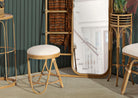 Questo sgabello si caratterizza per la sua forma rotonda, che lo rende un complemento d'arredo accogliente e invitante, adatto sia come seduta aggiuntiva che come elemento decorativo in vari ambienti della casa, come soggiorno, camera da letto, studio o ingresso.