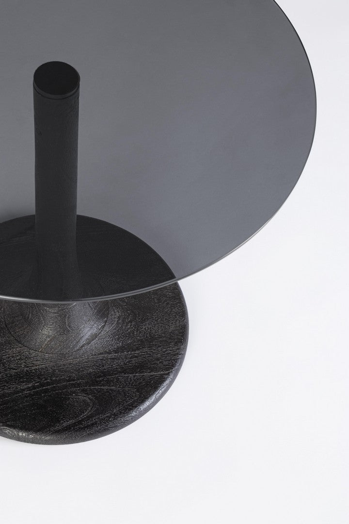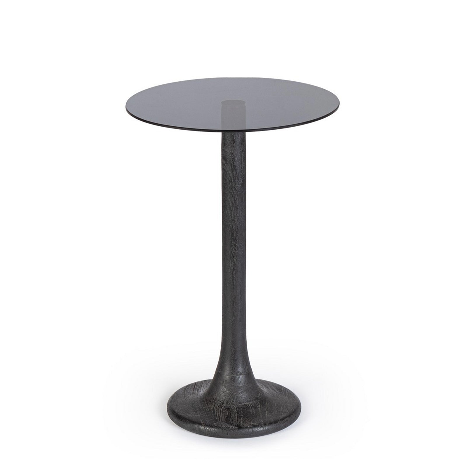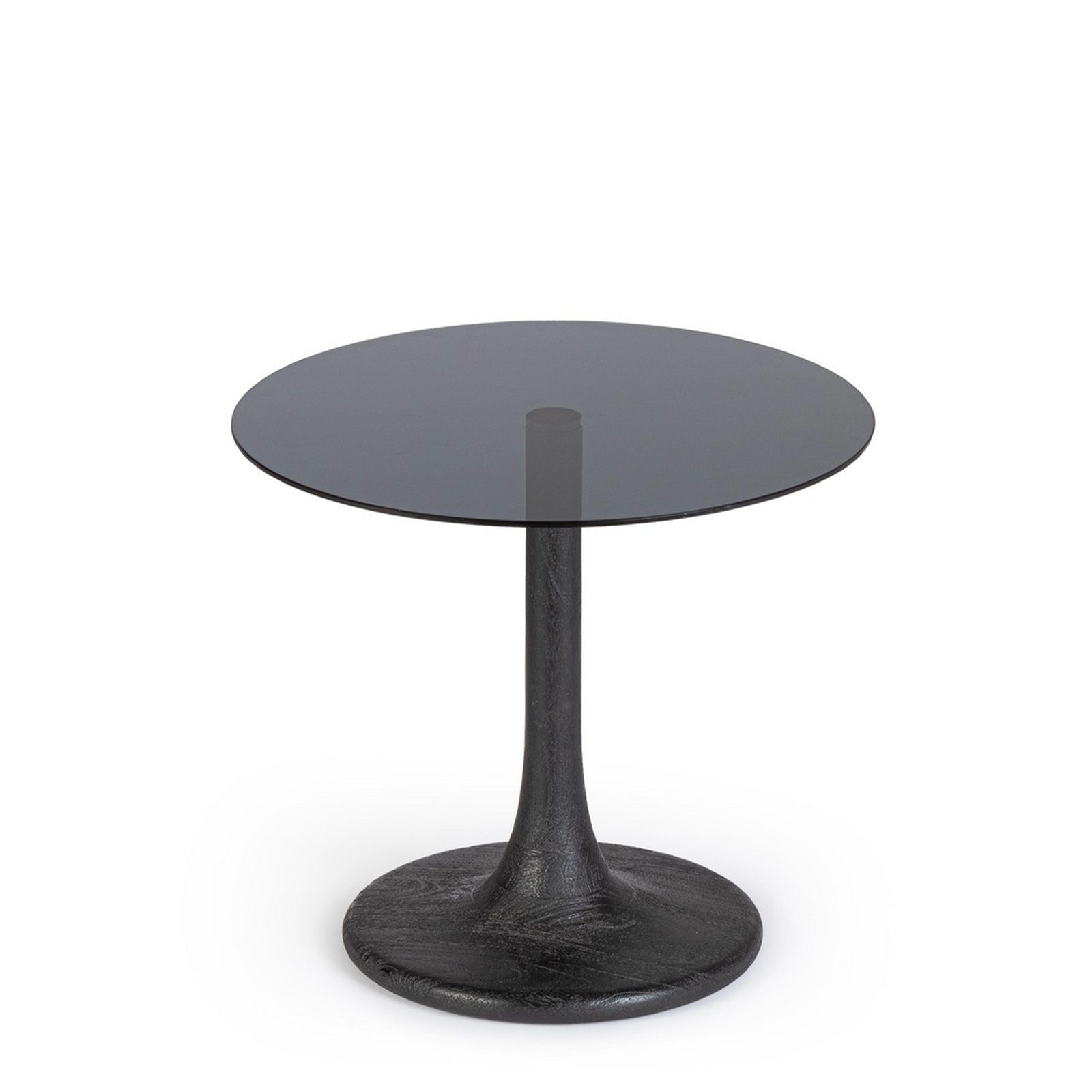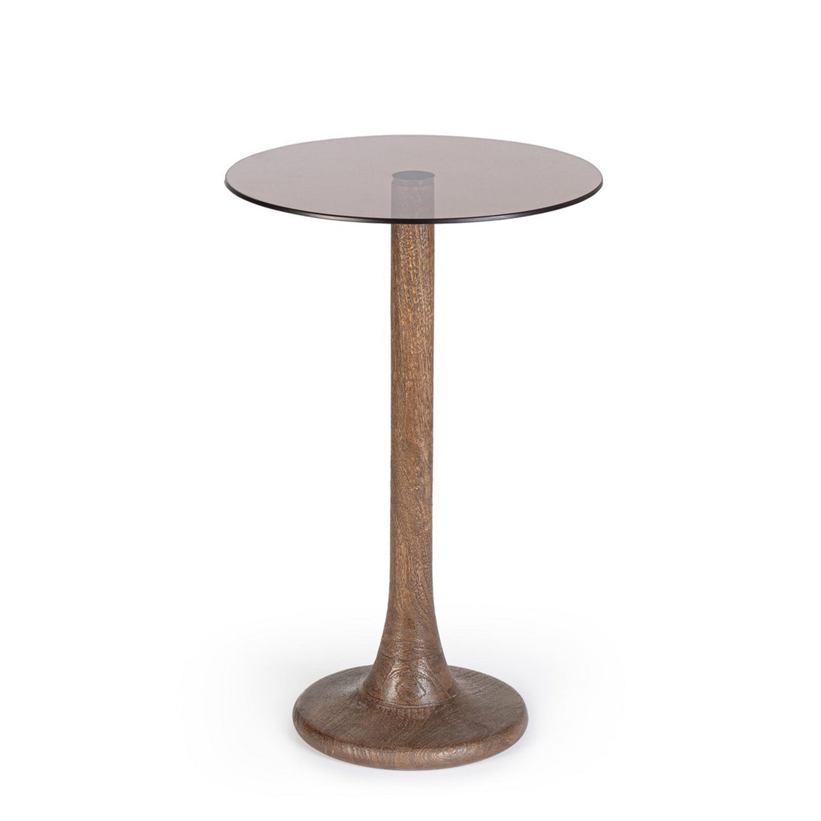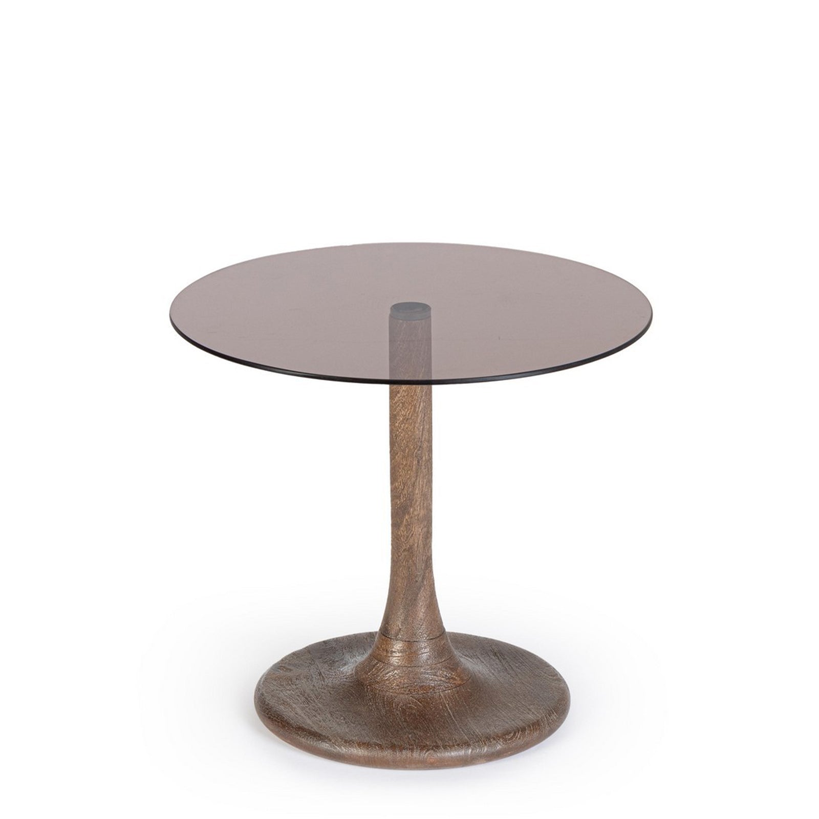 Tavolino "Aberdeen" gamba in legno di mango e piano in vetro per interni