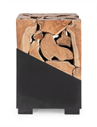 Questo contrasto tra la robustezza dell'acciaio e la ricca complessità delle radici di teak crea un effetto visivo dinamico, ideale per chi cerca un elemento di design che unisca natura e modernità.