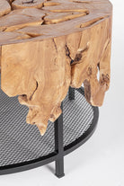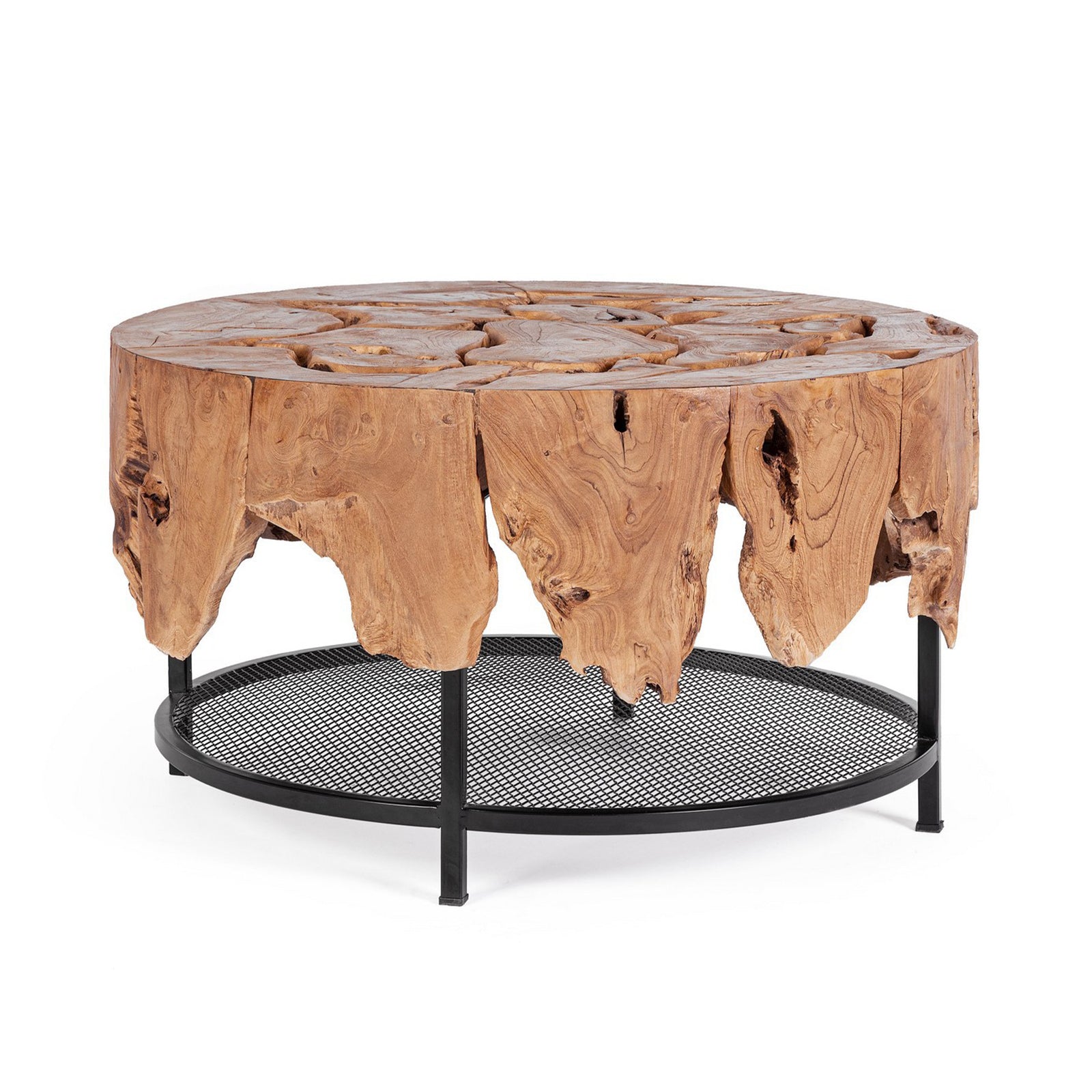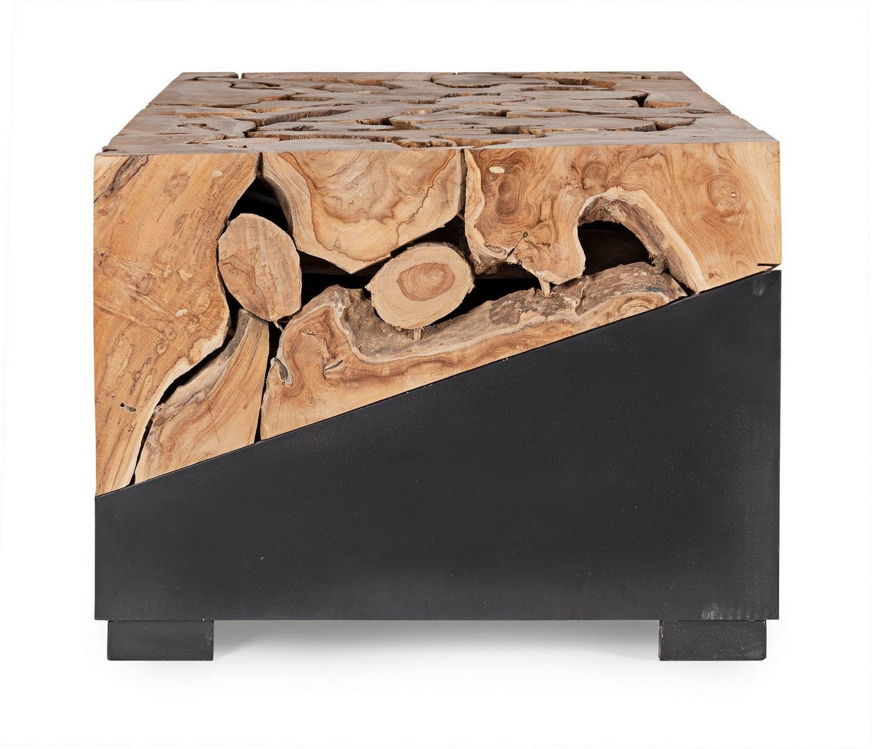 Tavolino "Grenada" base in acciaio e piano in radici di teak per interni