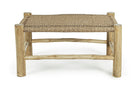 Il tavolino "Lampok" è un prodotto da esterno realizzato con una struttura in rami di teak e un piano intrecciato con fibra sintetica.