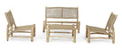 - Struttura in rami di teak, piano con intreccio in fibra sintetica (viro).