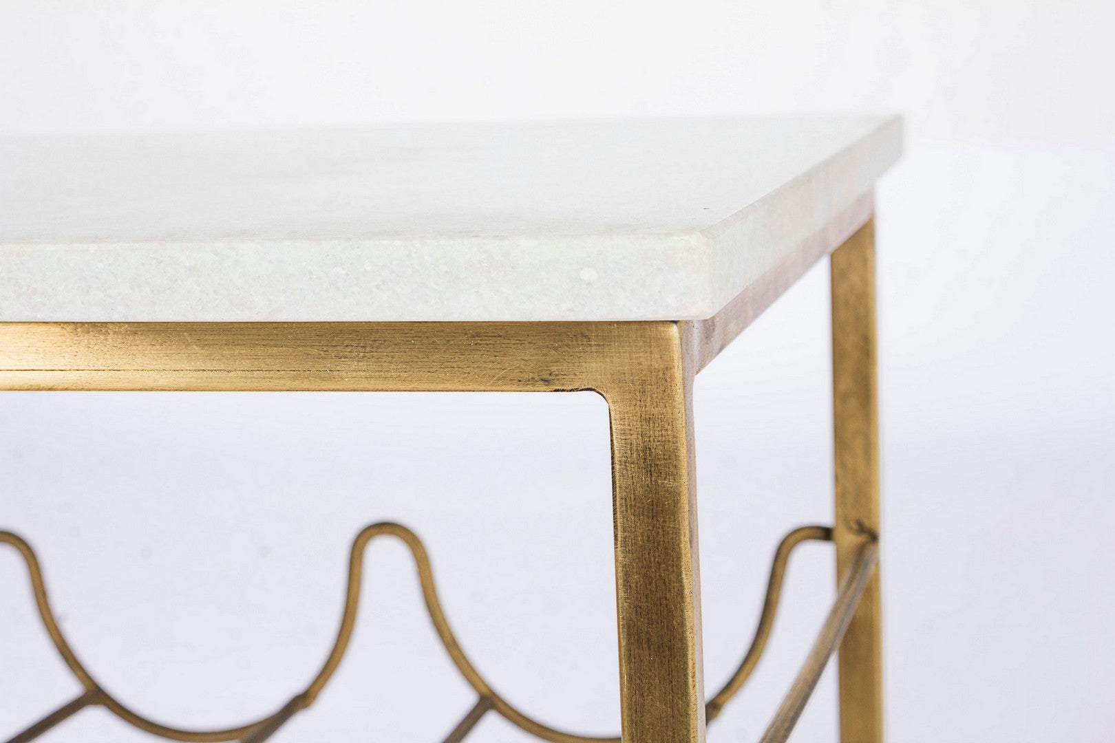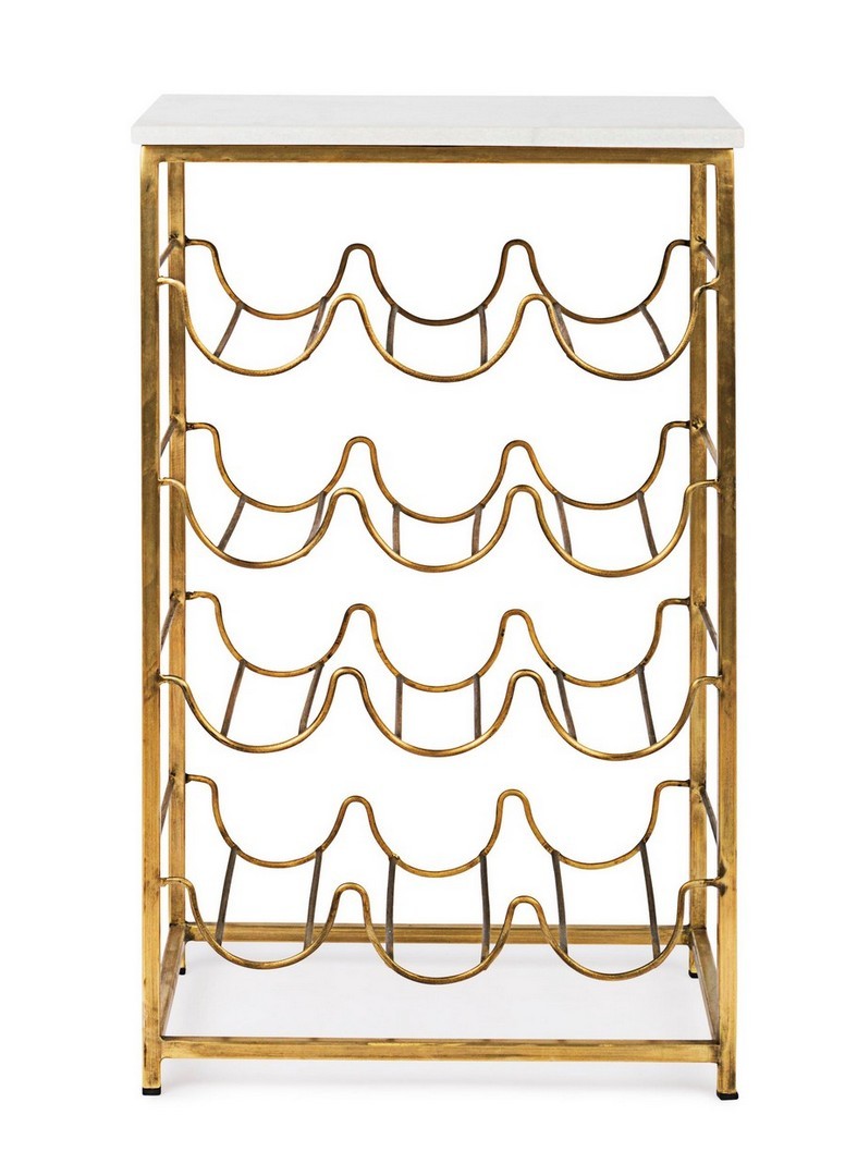 Tavolino "Marmol" con porta bottiglie struttura in acciaio e piano in marmo per interni